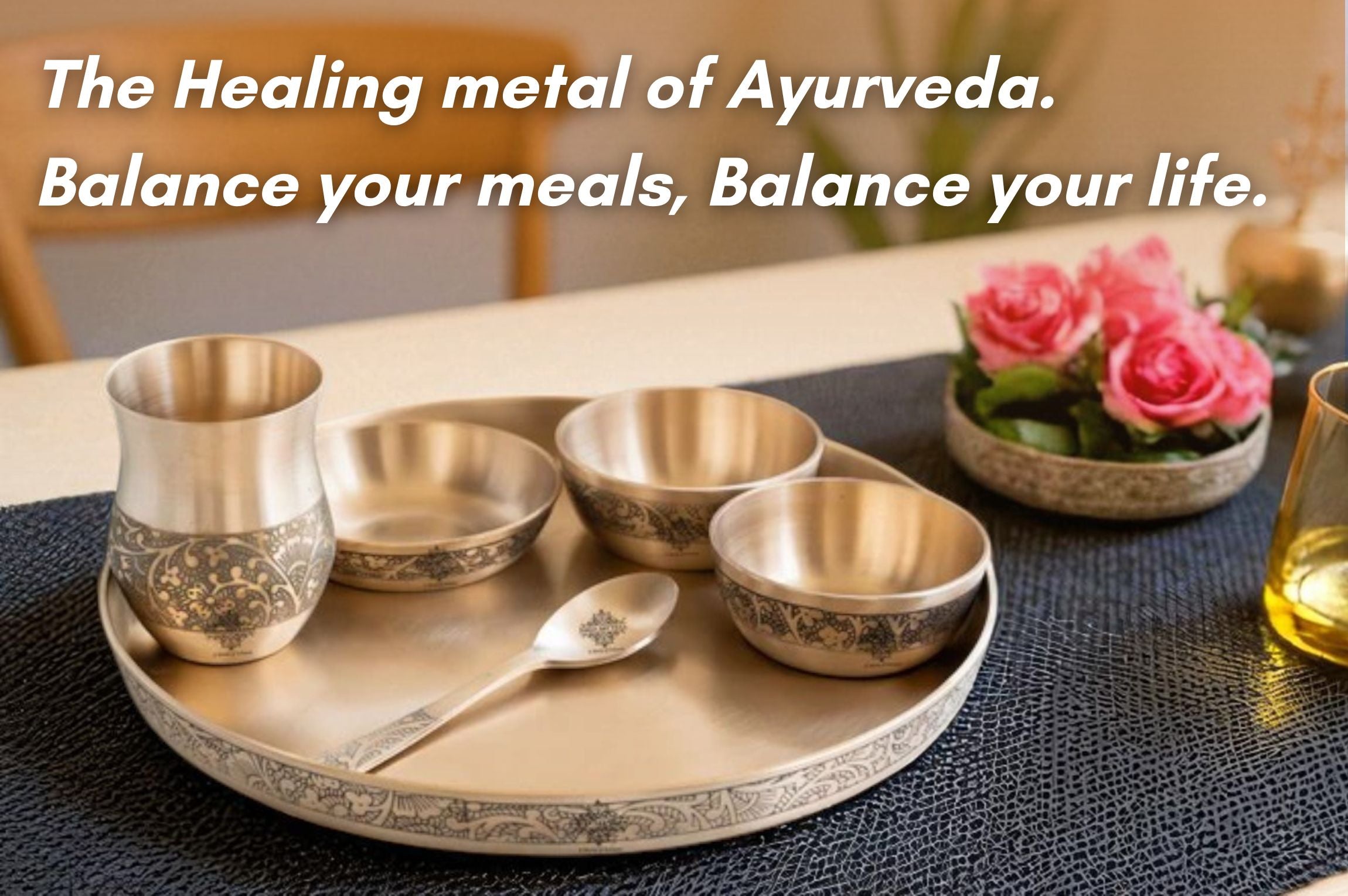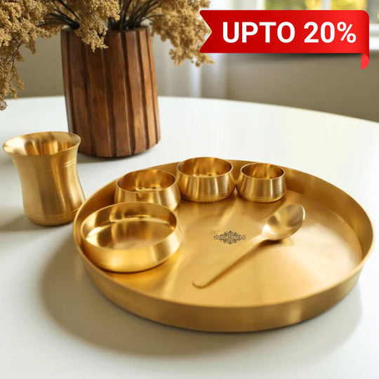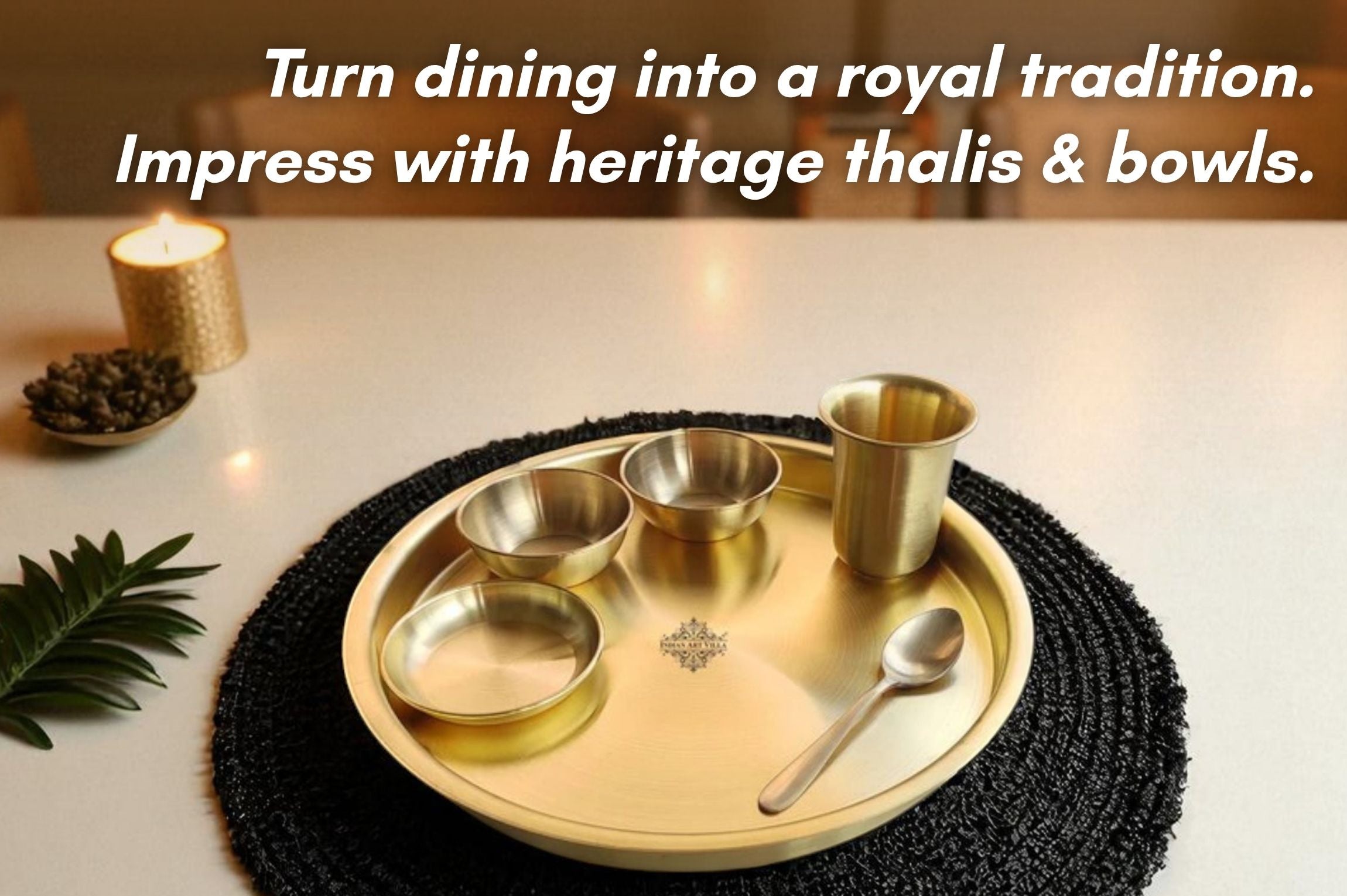 Pure Brass Matt Finish & Hammered 7 Pieces Dinner Set / Thali Set | DinnerWare |
