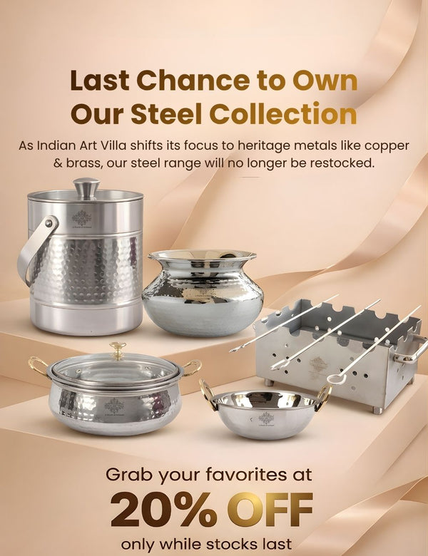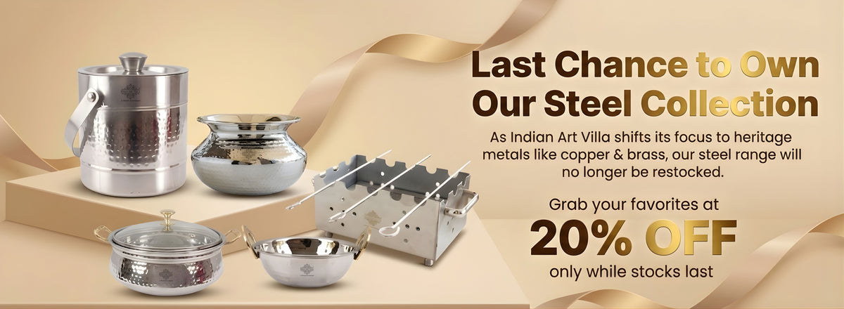 INDIAN ART VILLA is a leading manufacturer and exporter of traditional copper, brass, bronze, and silver-plated utensils. Inspired by the vision of promoting wellness through the benefits of copper, we offer a rich range of handcrafted and spiritual products rooted in Indian heritage.