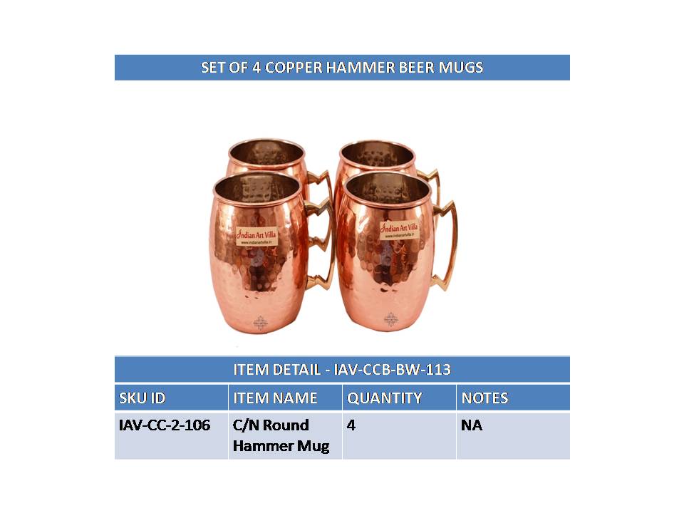 - These Pure Copper Nickel Round Hammered Moscow Mule Mug Cup also have Trendy looks for better ergonomics. You can add Royal Vintage Look to your Kitchen & Dining by using these Set as your Dinnerware/Serveware Purpose.