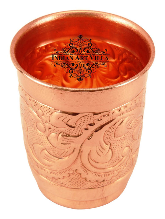 Indian Art Villa Presents Best Quality Pure Copper Engraved Leaf Design Glass. We offer the best affordable prices & Free Shipping PAN India. This Beautiful Pure Copper Engraved Leaf Design Glass can be used as a home decor item or it can also be gifted to your near and dear ones. Also, Make your home more lively and cheerful with this brilliant decor piece. If you’re looking for the finest quality Copper glass, you have come to the right place! We, at Indian Art Villa, have around a decade-long experience in terms of manufacturing copper products and have our own unique collection of Copper Glass is also becoming an integral part of modern-day kitchens. When talking about dinner sets, it is something that has the power to make or break the beauty of the dining table. This not only helps in boosting up your immune system but also has the power to beat hypertension. Copper is a material that has been used and cherished by our ancestors and it possesses some miraculous health benefits which have been Proved scientifically as well. Indian Art Villa items have antique designs. The item is highly durable, elegant, and an excellent addition to your Home Decor.