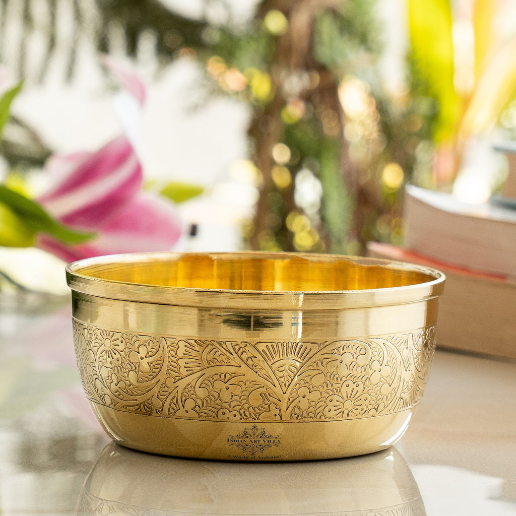 Pure Brass Embossed Design Flat Bottom Bowl Volume-200 ml