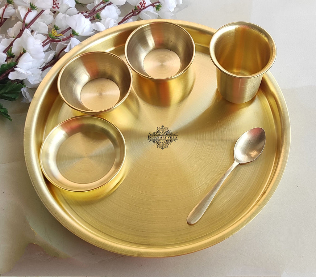 Pure Brass Matt Finish 6 Pieces Dinner Set / Thali Set, Dinnerware, Tableware