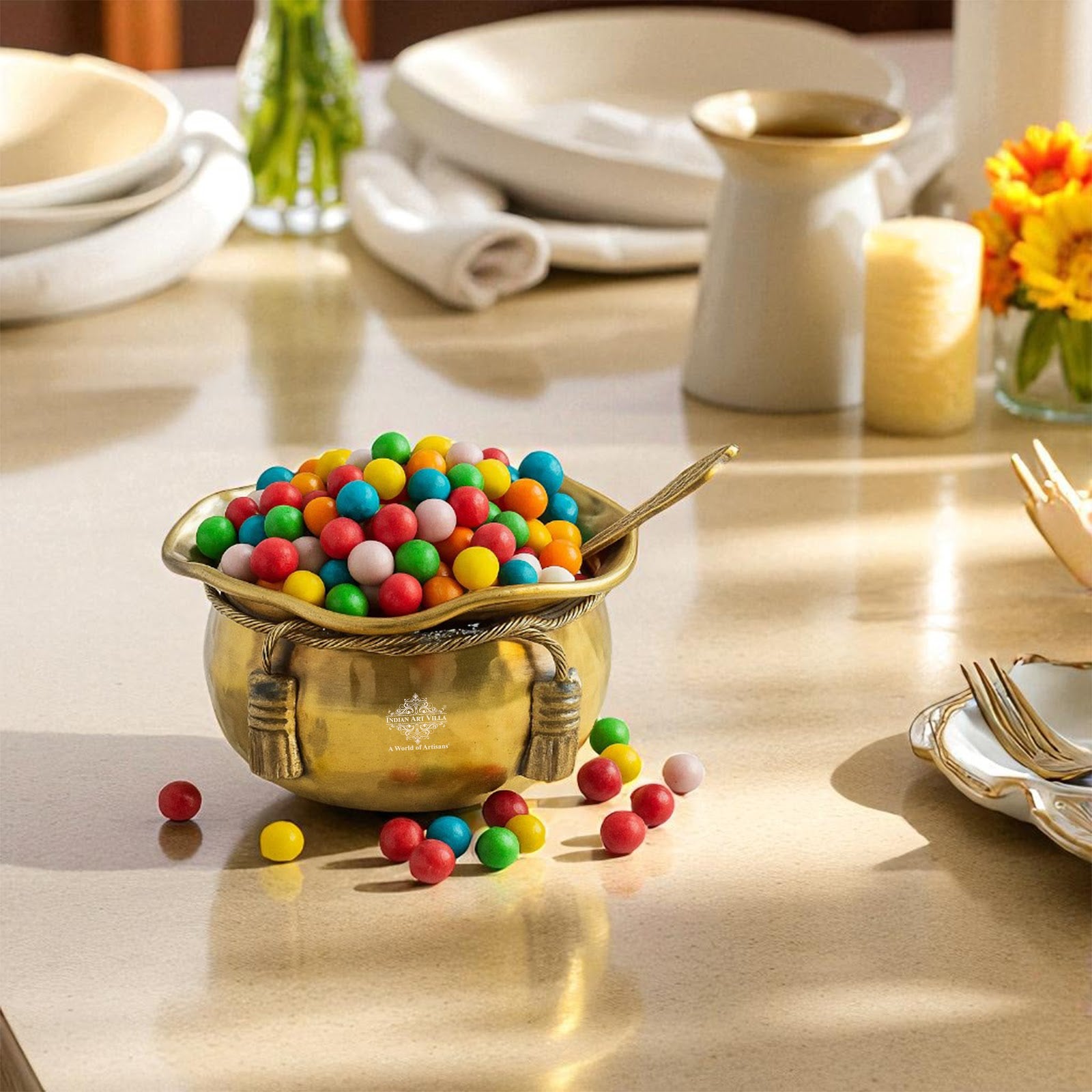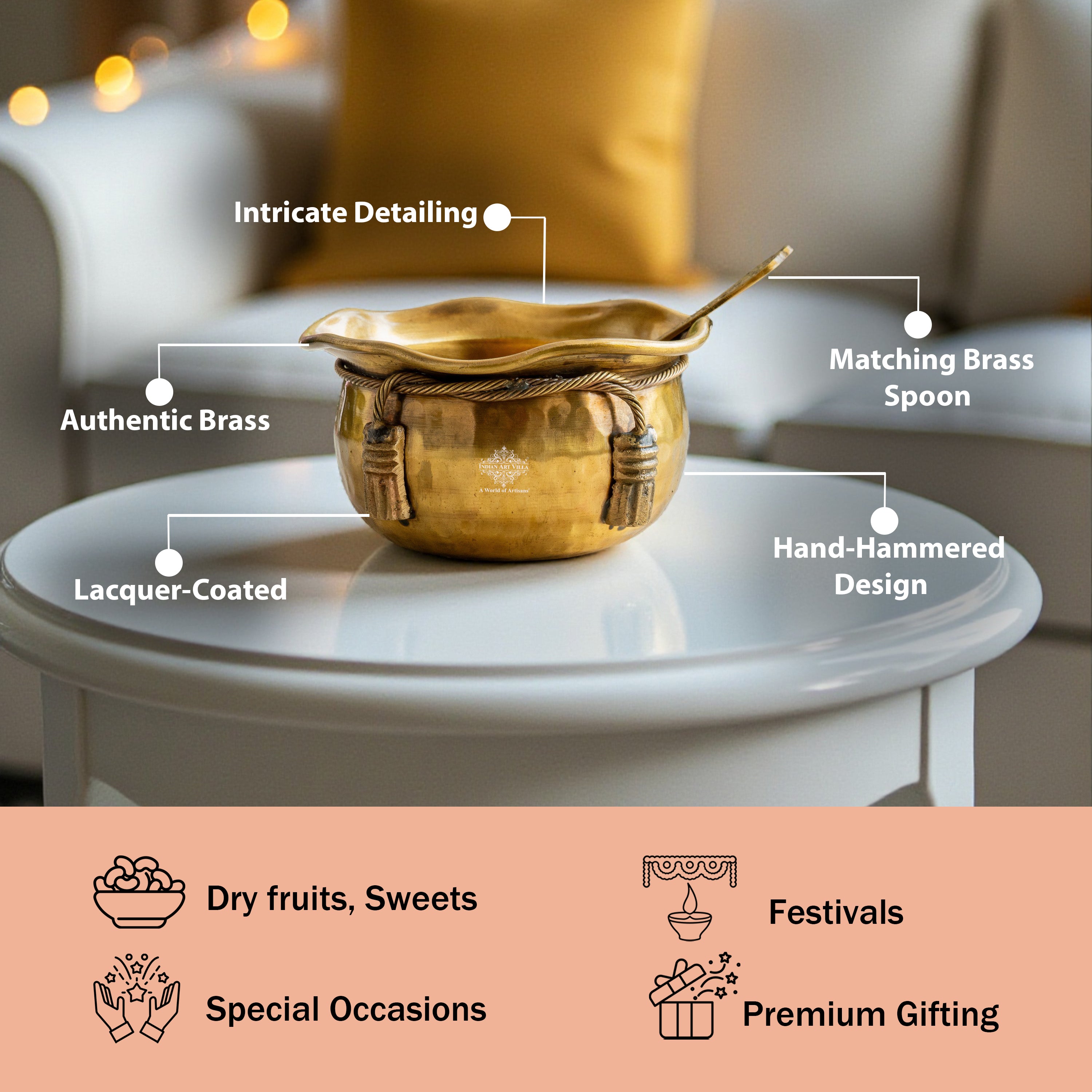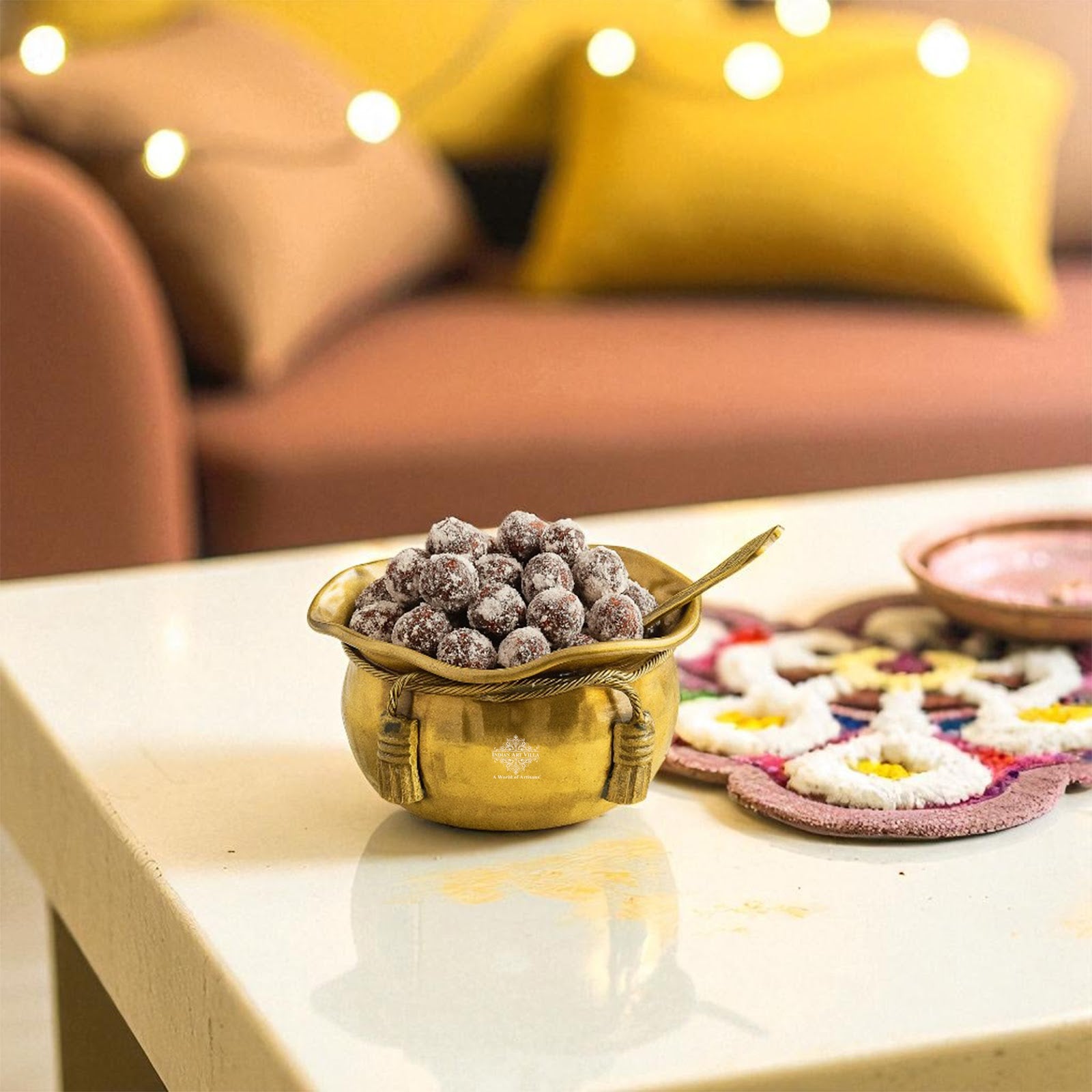 Handcrafted Brass Bowl & Spoon Set – Beautifully handcrafted from premium brass with a hammered texture, this elegant set embodies timeless Indian artistry — perfect for both traditional and modern homes.