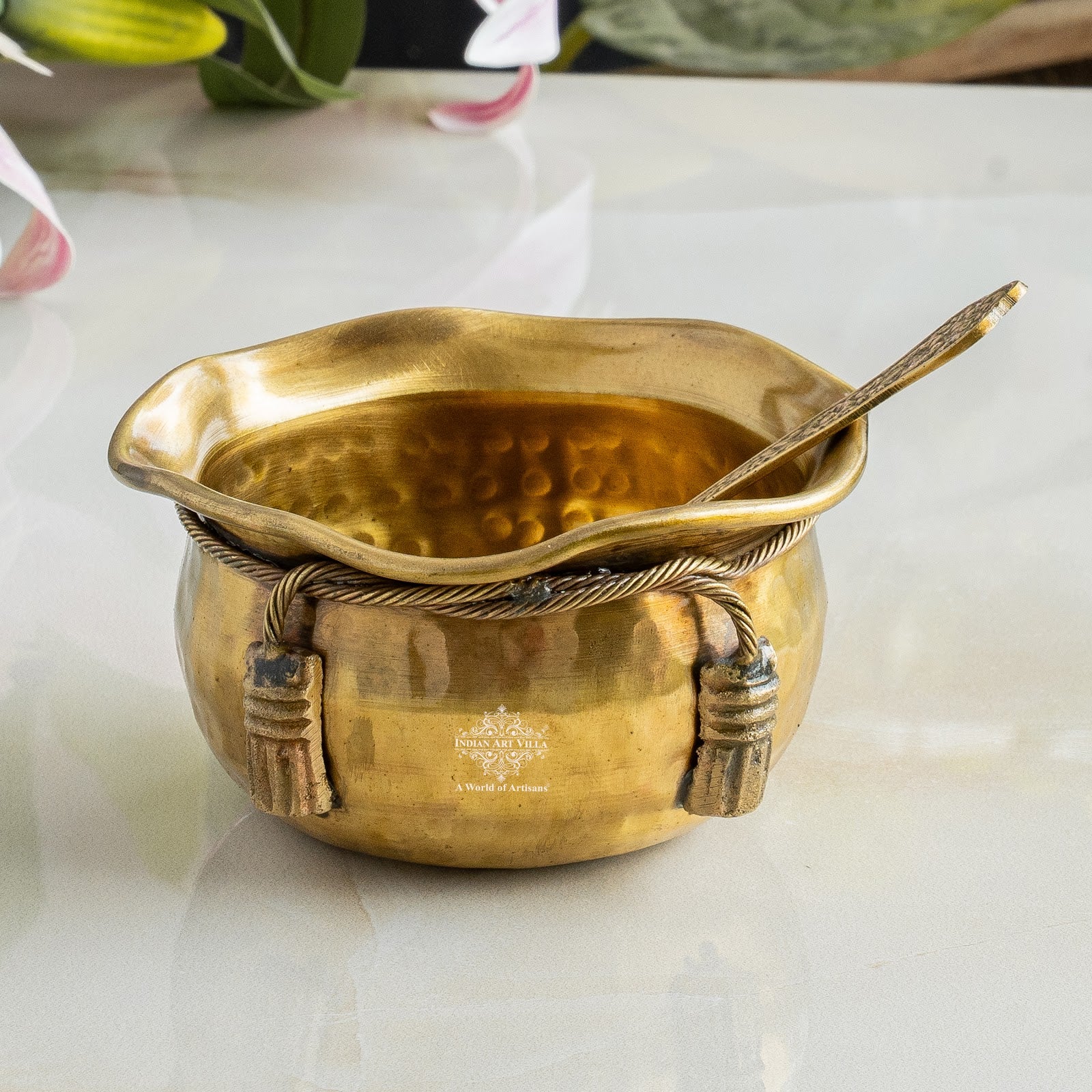 Indian Art Villa presents The Brass Bowl with Spoon Set (Hammered Design, 170 ML & 270ML) — a perfect fusion of heritage craftsmanship and refined elegance.