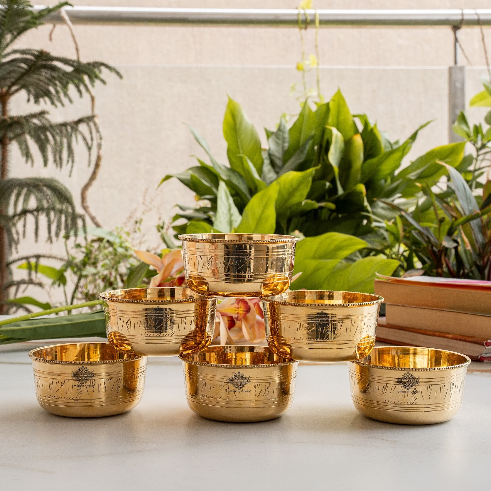 This beautifully handcrafted Indian Art Villa Brass Bowl with Etching & Beeding Design brings elegance and tradition to your dining table. Made from high-quality brass, it features intricate etching and a beeded rim, making it a timeless piece of serveware. The bowl is not just stylish but also durable, ensuring long-lasting use for everyday meals as well as special occasions.
