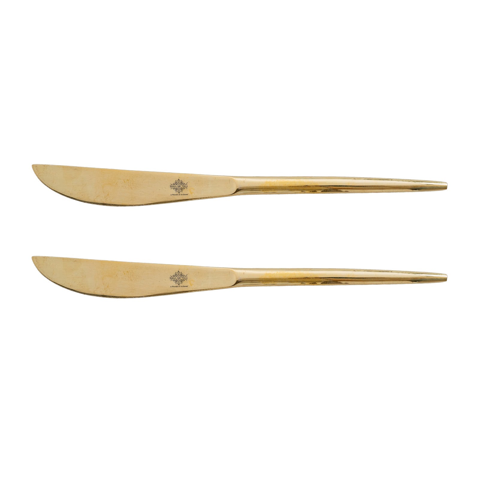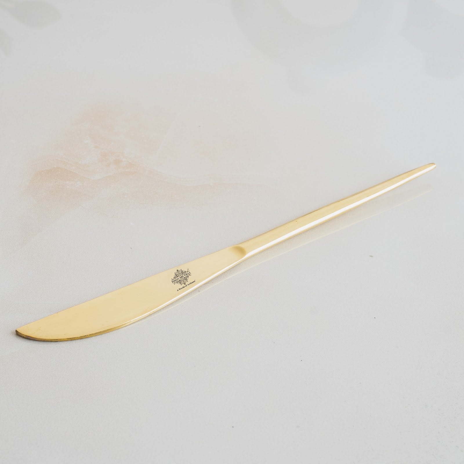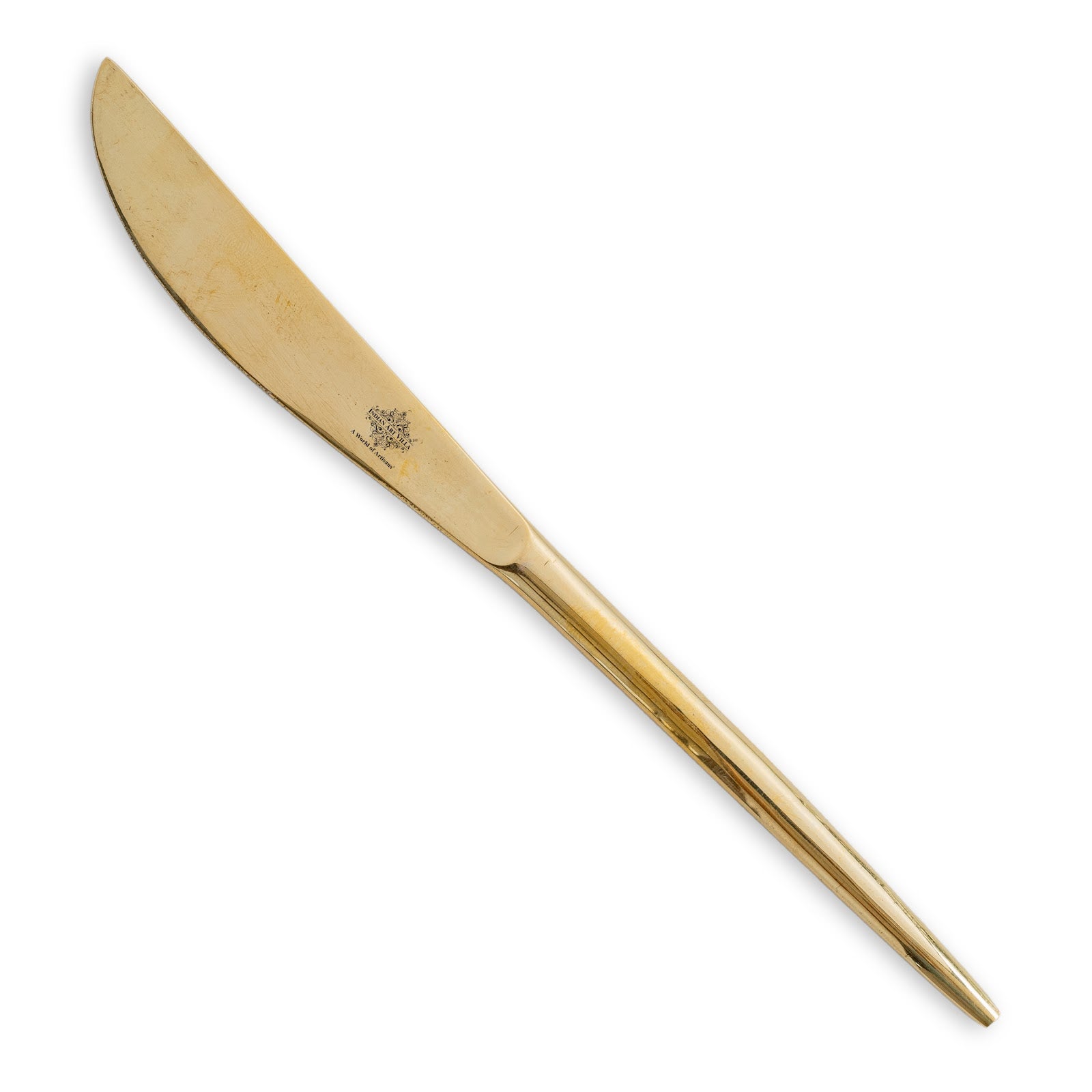 Add a touch of timeless elegance to your dining experience with the Indian Art Villa Brass Butter Knife with Flat Handle Design. Meticulously handcrafted from high-quality brass, this 22 cm knife is designed for effortless spreading of butter, jams, or sauces and can also be used for cutting soft foods with ease. Its smooth, minimalist structure and flat handle ensure a perfect grip, combining functionality with refined style.