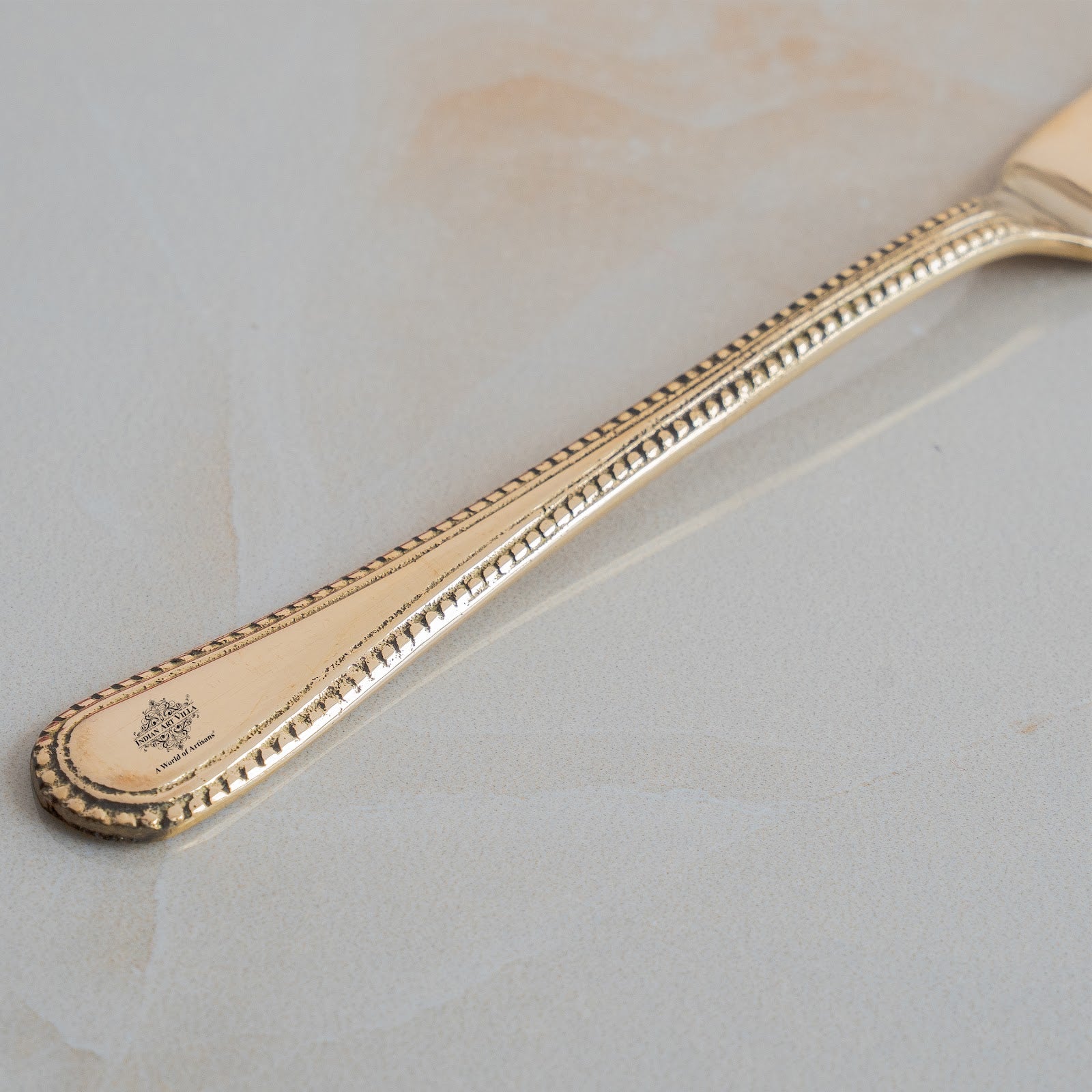 Indian Art Villa Pure Brass Designer Spoon, an exquisite addition to your dinnerware collection. Crafted with precision and attention to detail, this spoon showcases the beauty of brass in its finest form. Designed to elevate your dining experience, this spoon features a stunning blend of traditional aesthetics and contemporary style. The intricate patterns and motifs carved on the handle reflect the rich heritage of Indian artistry. Its ergonomic design ensures a comfortable grip, making it perfect for everyday use or special occasions. Made from pure brass, this spoon is not only durable but also adds a touch of elegance to your table setting. Its lustrous finish enhances the visual appeal, making it a statement piece that complements any table decor. Whether you are hosting a dinner party or simply enjoying a meal with your family, the Indian Art Villa Pure Brass Designer Spoon is a perfect choice for adding sophistication and charm to your dining table. Embrace the beauty of Indian craftsmanship with this stunning piece of dinnerware.