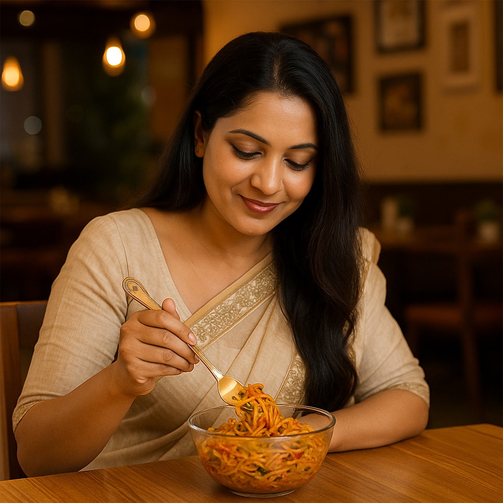 - Feed yourself with this elegant traditional Fork. This is a set of centerpiece dinnerware. Let your Friends & Family have their meal in unique and ethnic looking Dinnerware with health benefits. With this dinner set, your Indian style dining experience goes several notches up. The material used is food grade.