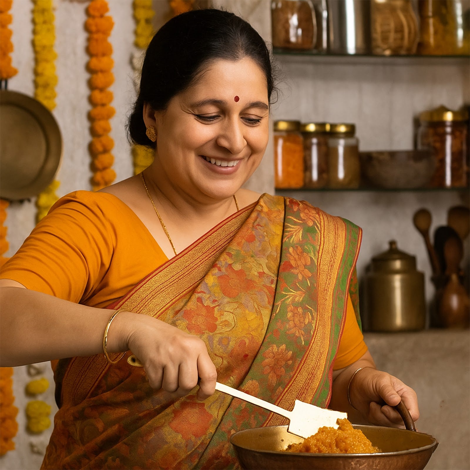 Premium Brass Material – Made from pure brass, renowned for its durability, strength, and traditional use in Indian kitchens, often linked with Ayurvedic benefits.