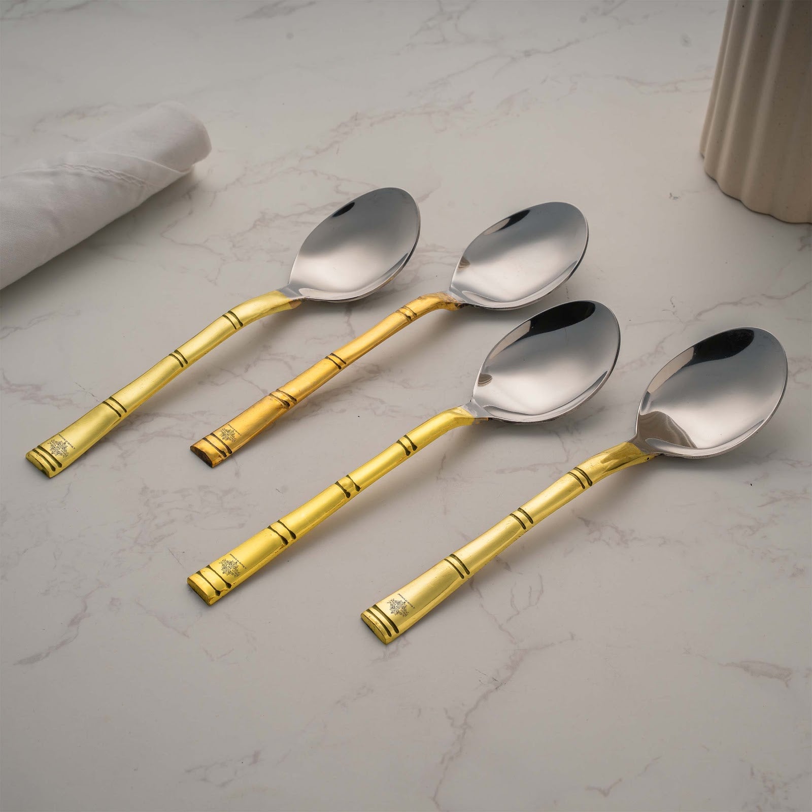 - These Pure Brass Tree Design Spoon also have Trendy looks for better ergonomics. You can add Royal Vintage Look to your Kitchen & Dining by using these Set for your Drinkware/Serveware purposes.