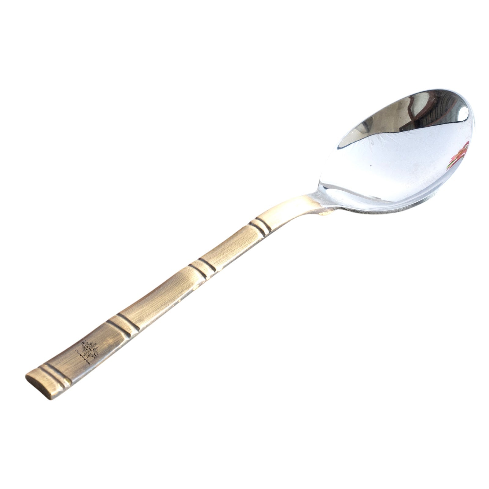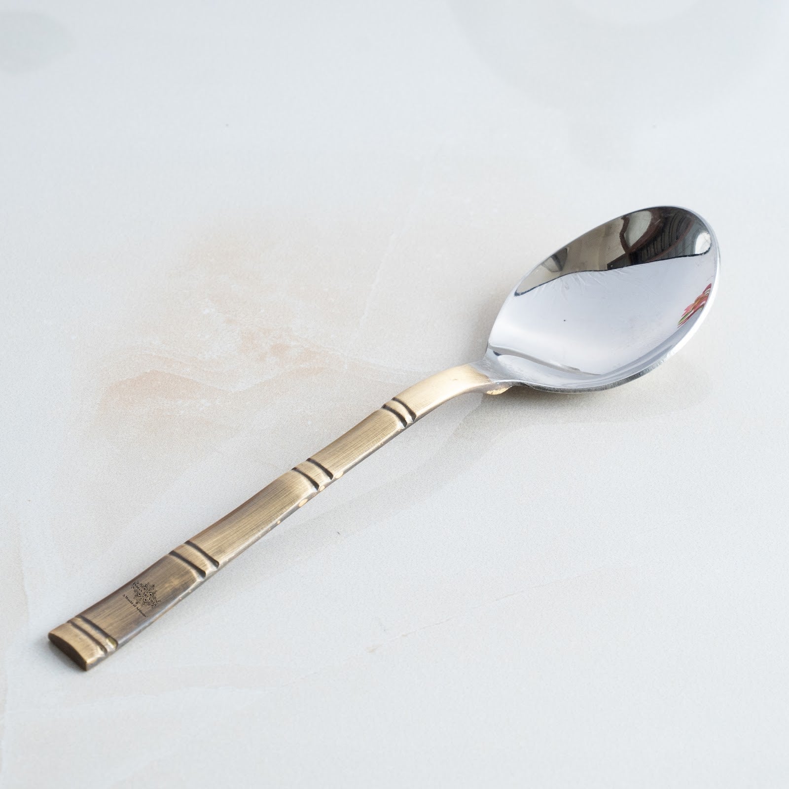 Bring elegance and tradition to your dining experience with the Indian Art Villa Steel Brass Spoon with Bamboo Design Handle. This beautifully crafted 7-inch spoon combines the strength of stainless steel with the charm of antique brass, creating a perfect balance of functionality and aesthetics.
