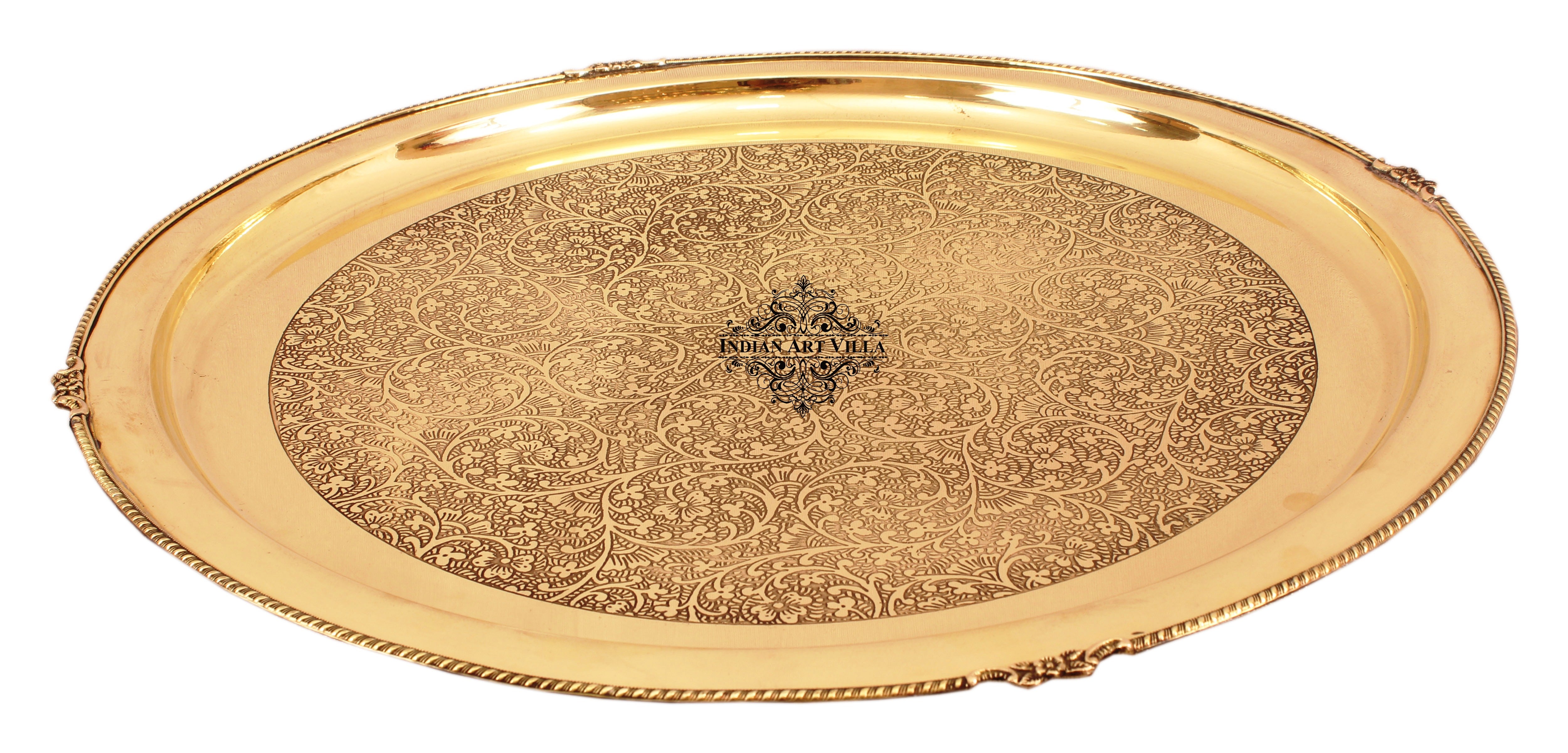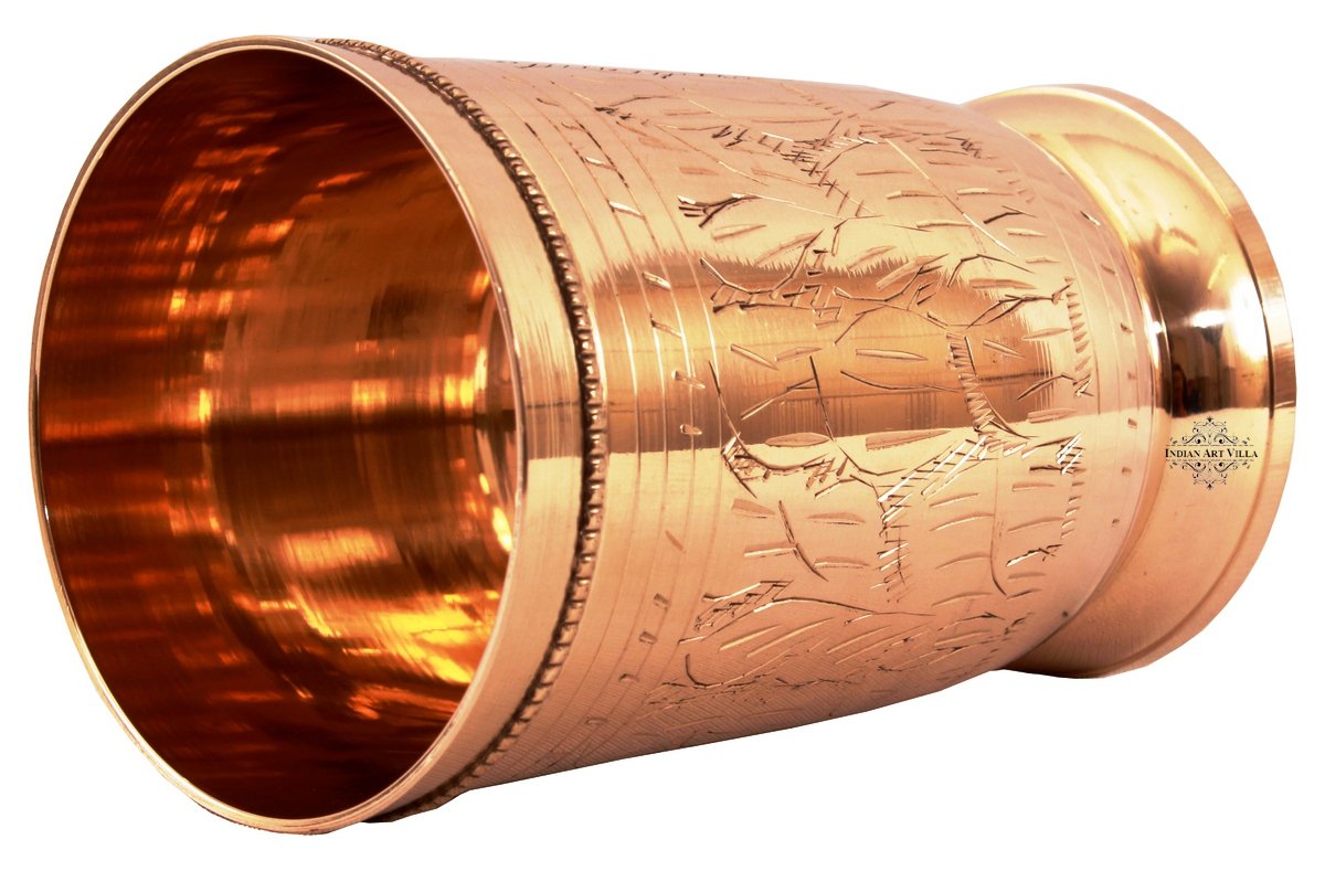 Indian Art Villa Presents Top Quality Brass Embossed Finish Thali or Dinner Set, Dinner Set that includes 1 Thali / Plate, 3 Vegetable Bowls, 1 Bowl, 1 Spoon, and 1 Glass / Tumbler. We offer best affordable prices and Free Shipping PAN India. We also offer Easy returns and exchanges. TandC Applied. Cooking is an art and plating it in the right way is just accentuating the art with all that detailing! When talking about dinner set, it is something which has the power to make or break the beauty of dining table. It has the power to make or break the beauty of dining table. Having meals in Brass Dinner set / Dinnerware gives a royal touch as well as improves your overall health. Mainly, it pacifies Vata (dry skin, nervous temperament, irritability) and pitta. It also helps reduce obesity, improve eyesight, and skin condition.. Brass is a material that has been used and cherished by our ancestors and it possess some miraculous health benefits which have been proved scientifically as well. there wasn’t even a single home without Brass Kitchenware. This ancient metal is rarely used these days, however, it offers tremendous benefits.