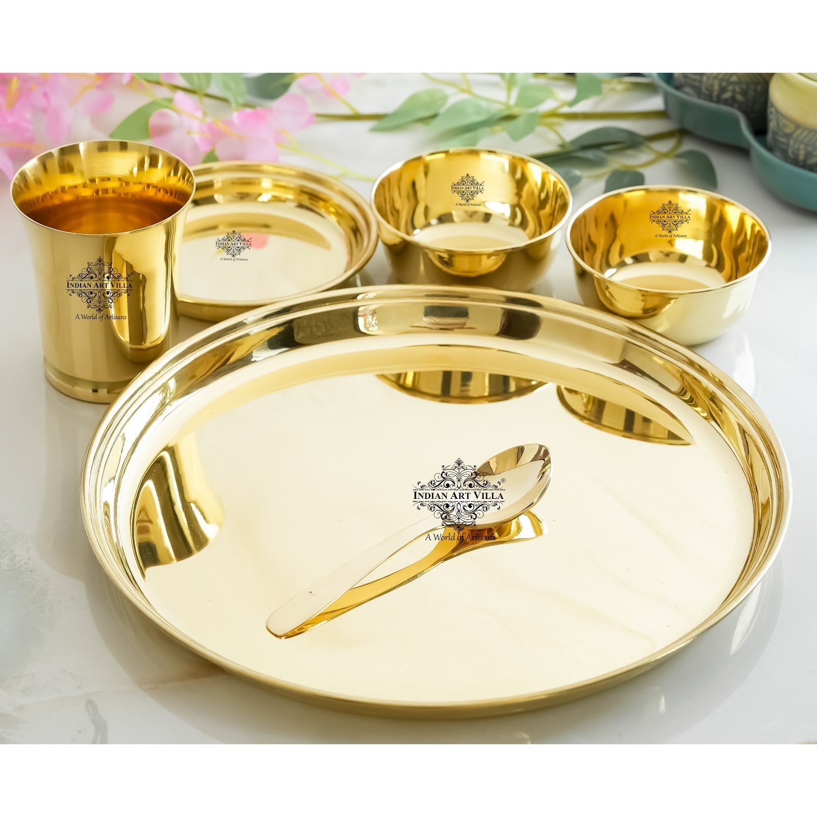- Order this Pure Brass Dinner Matt Finish Design Set of 7 Piece from Indian Art Villa at Great deals & offers and get a Contactless delivery at your doorstep.