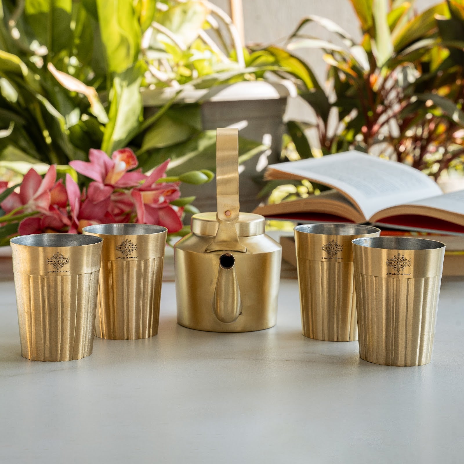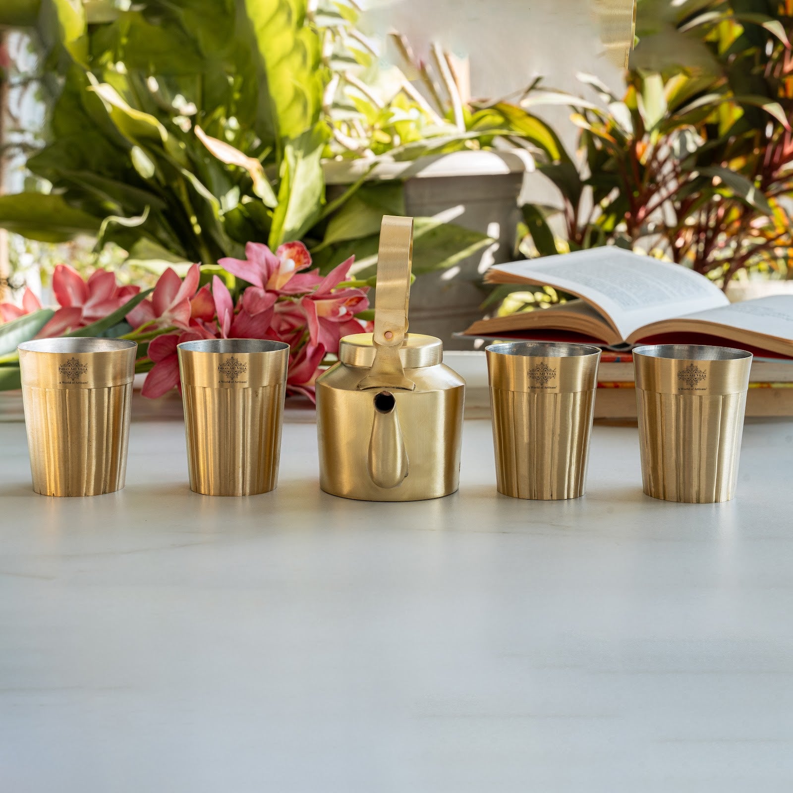 - IndianArtVilla Pure Brass Tea Kettle with glass, it was almost impossible to find one that came in a design other than the plain one. Indian Art Villa Provide You with different designs to choose from, allowing you to pick your favorite design or collect them all for those who want a variety of options.