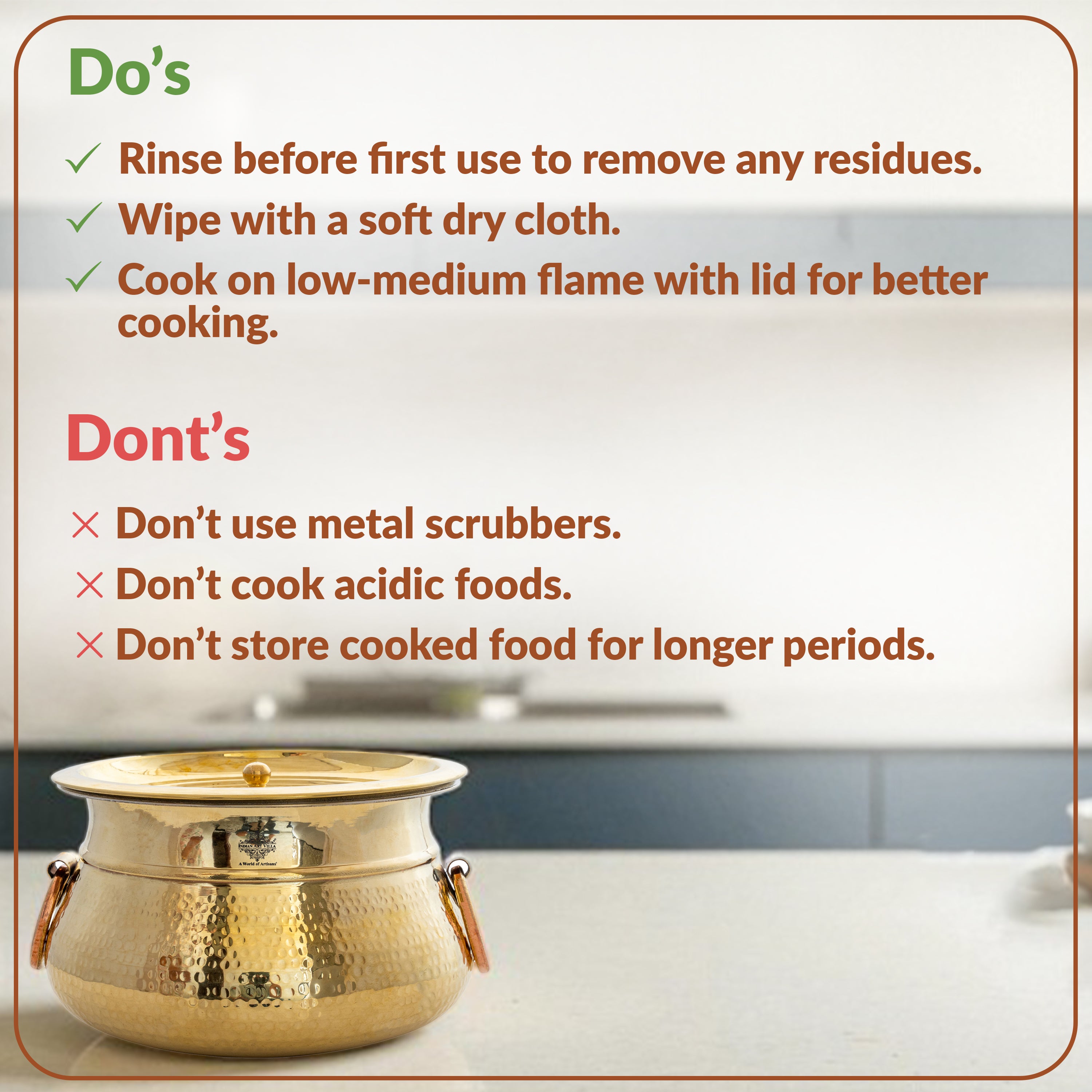 Tin Lining: Lined with a layer of tin, enhancing safety and preventing direct contact with food, ensuring healthier cooking.