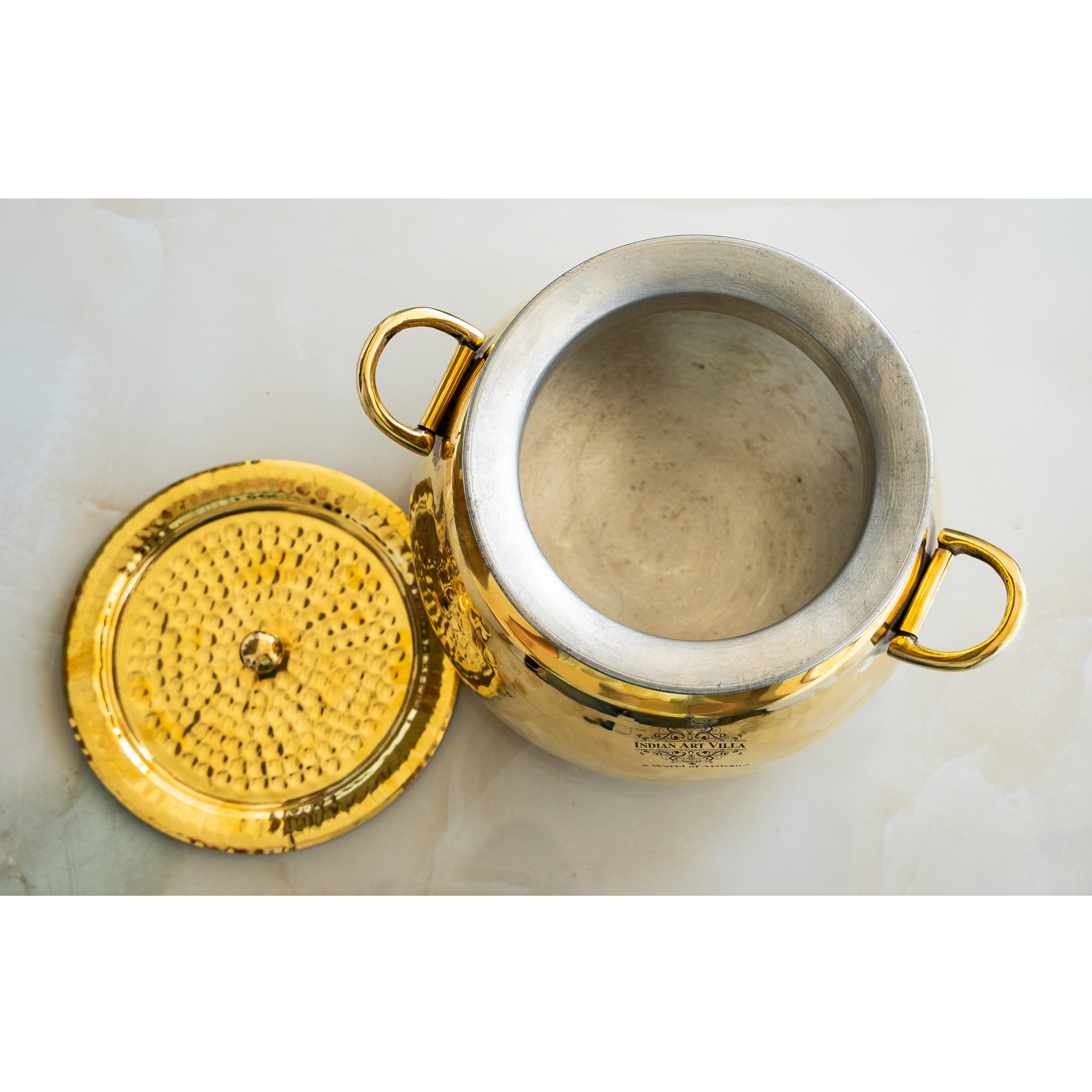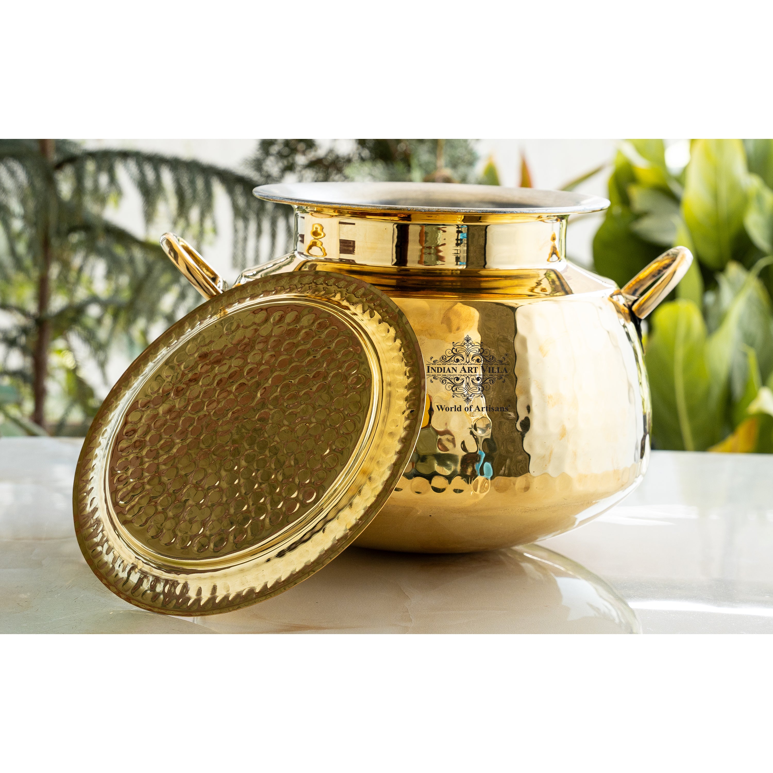 Functional Design: Comes with a matching brass lid and side handles for easy lifting and traditional serving.