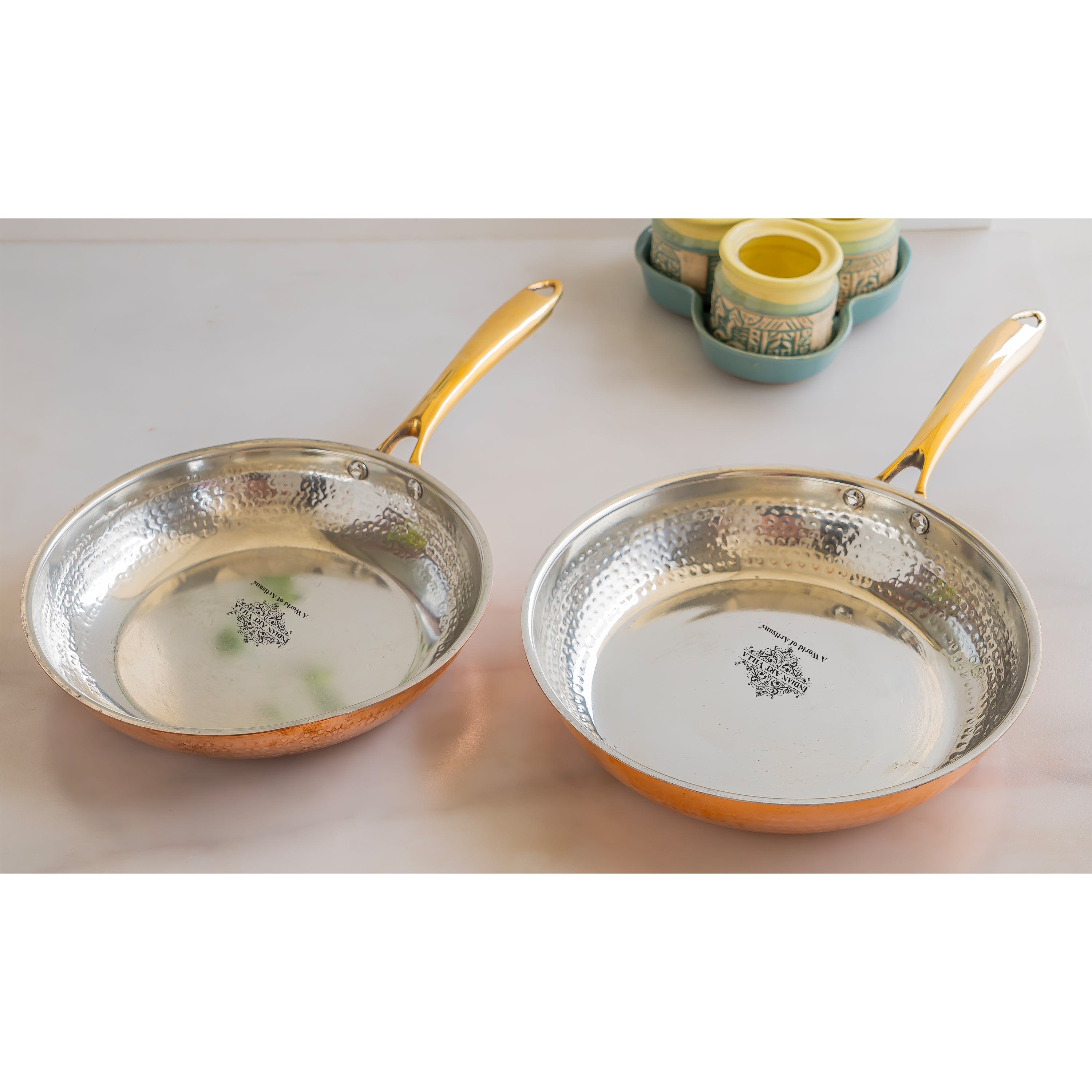 The hammered copper exterior gives it an artisanal touch while ensuring fast, uniform heating. The tin lining inside prevents food reactions, making it ideal for frying, sautéing, or preparing curries. Whether you're cooking for daily meals or special occasions, this fry pan ensures you retain the original flavor of Indian recipes.