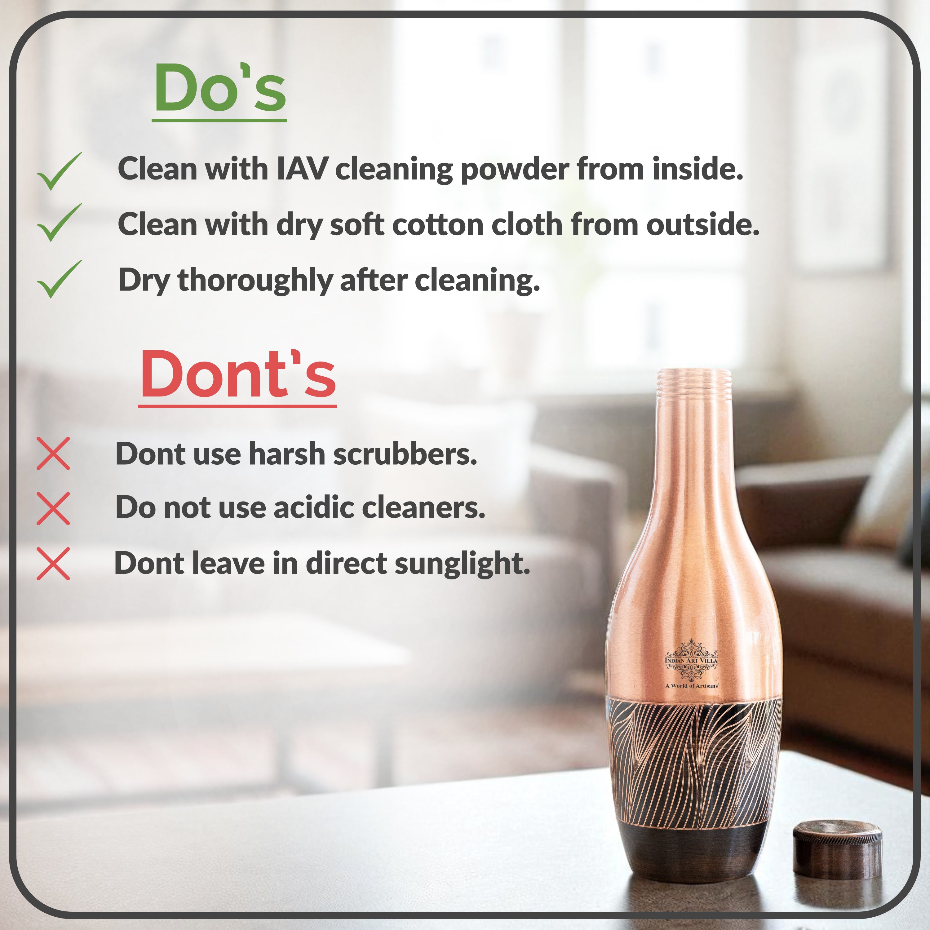 Stay hydrated in style with the Indian Art Villa Copper Zebra Embossed Designer Bedroom Bottle/Jar 1150 ML. Crafted from 100% pure copper, this exquisite jar is a blend of health and elegance. Its intricate zebra-embossed design showcases the masterful touch of Indian artisans, while the antique finish adds a timeless charm to any space. Known in Ayurveda for its natural water purification properties, copper helps enhance immunity, improve digestion, and balance your body's systems. This leak-proof bottle is designed to accompany you effortlessly in your bedroom or workspace, offering the perfect blend of beauty and function. Eco-conscious and sustainably made, it’s the ultimate upgrade from plastic bottles.