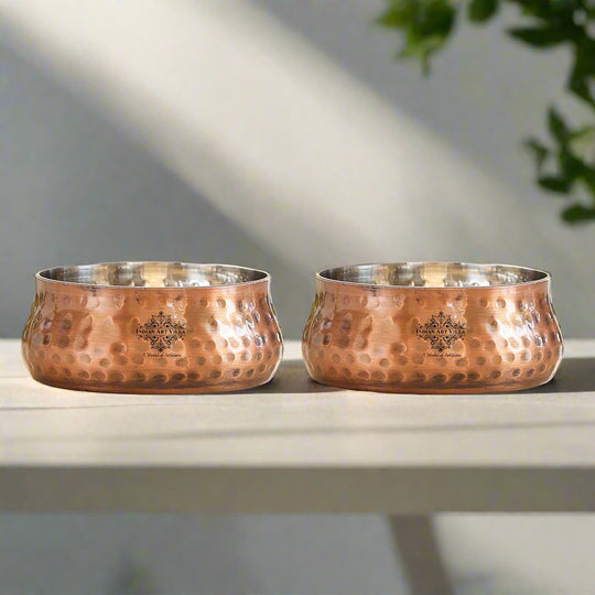 - Double Layer Strength: The outer layer of hammered copper brings elegance, while the stainless steel lining ensures food safety, easy cleaning, and long-term durability.