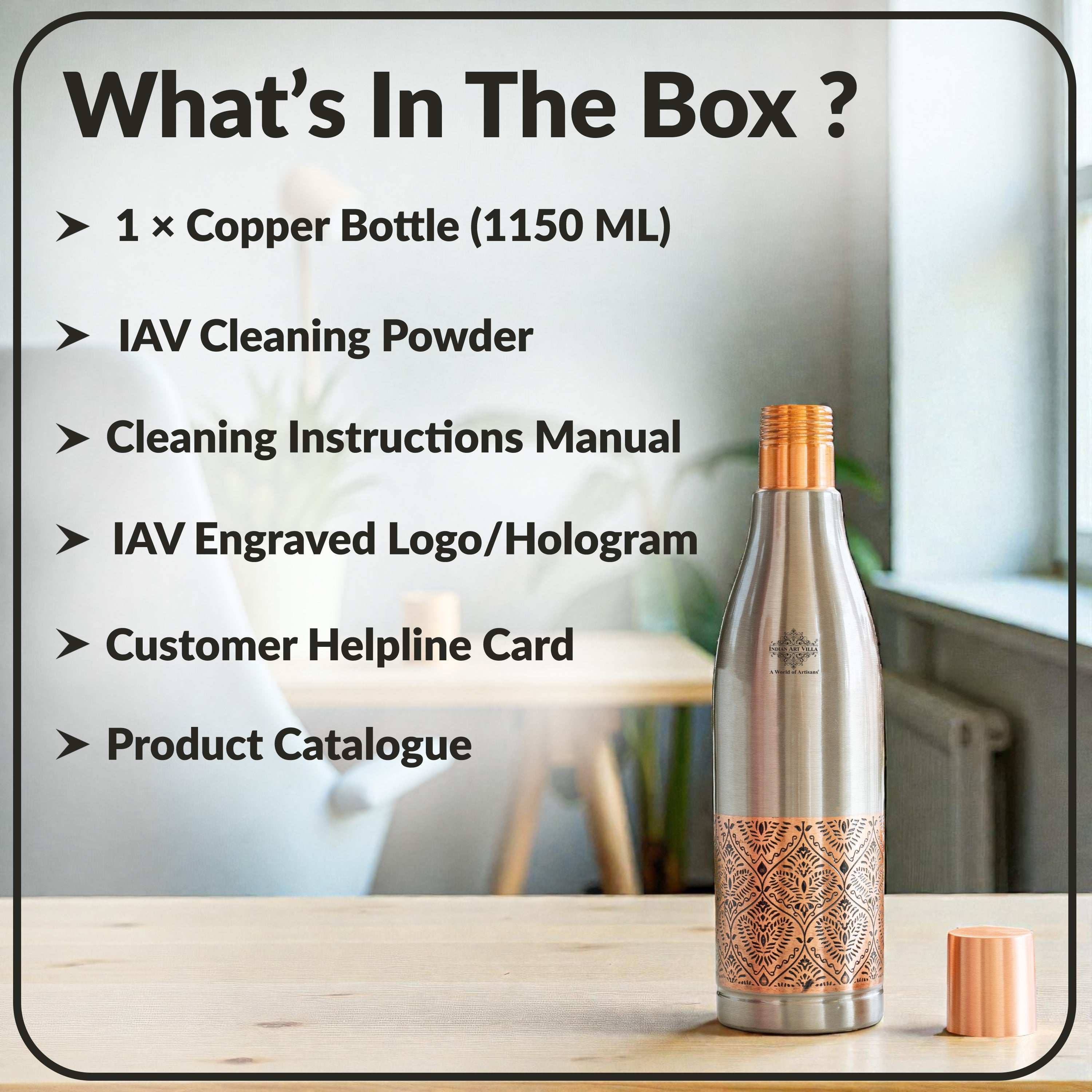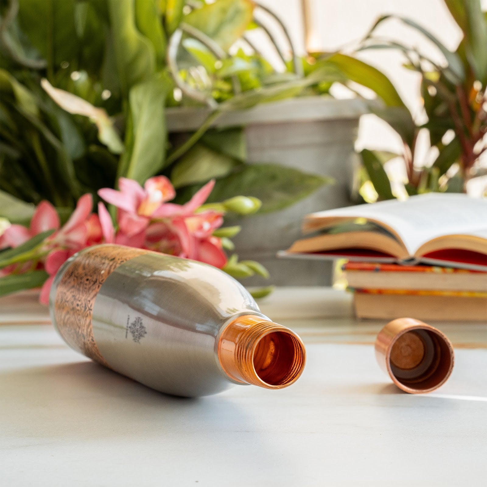 Ayurvedic Health Benefits: Storing water in a copper bottle naturally infuses it with antioxidant and anti-bacterial properties that promote digestion and overall well-being.