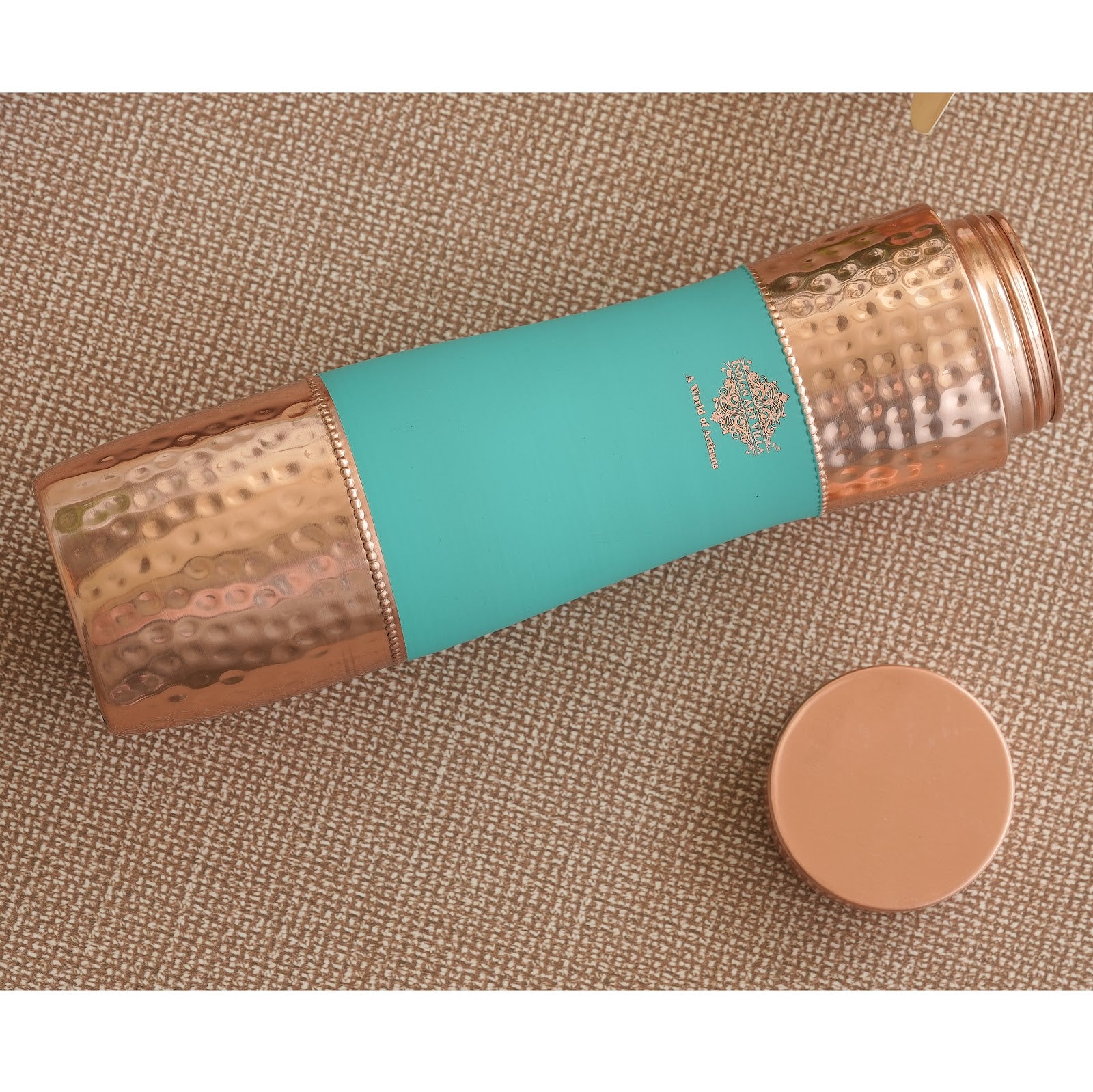 Indian Art Villa Pure Copper Bottle – Half Hammered & Half Silk Finish.