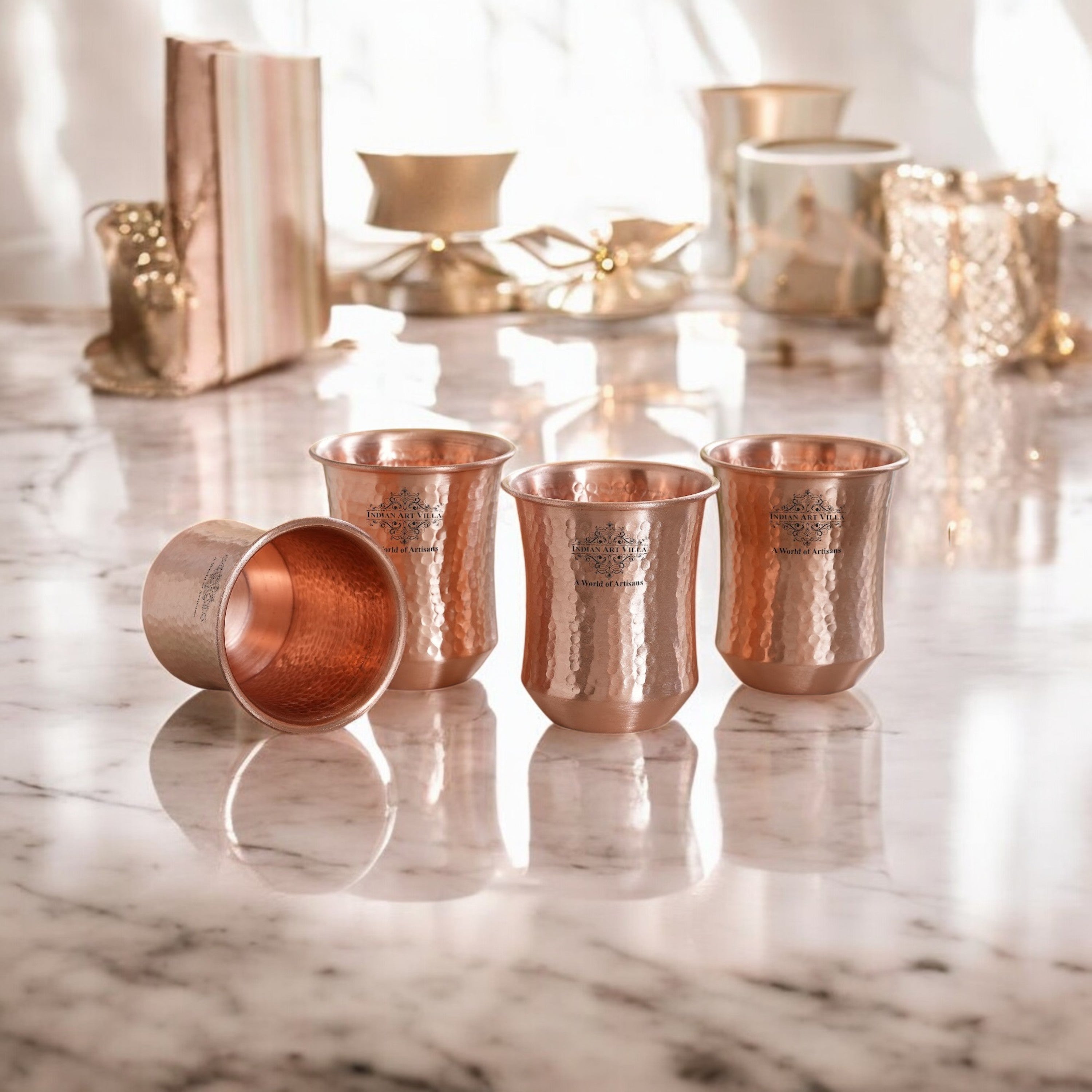 • In the infancy period of Copper Hammered & Smooth Design Glass, it was almost impossible to find one that came in a design other than the plain one. Indian Art Villa Provide You with different designs to choose from, allowing you to pick your favorite design or collect them all for those who want a variety of options.