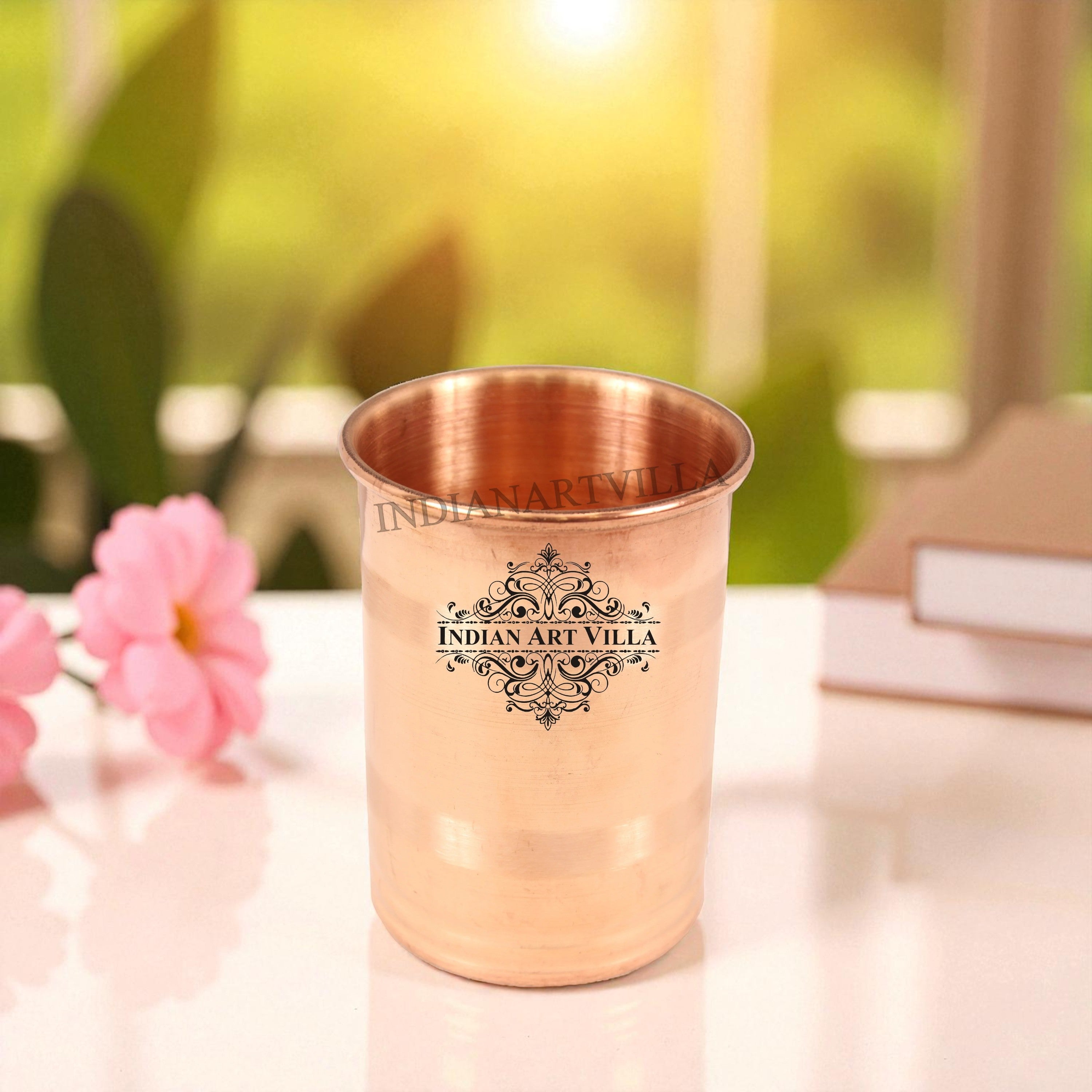 Indian Art Villa Presents Best Quality Pure Copper small Tumbler / Glass handcrafted in luxury design with a capacity of 150 ml. We offer best affordable prices & Free Shipping PAN India. Drinking the Water stored in copper utensil has innumerable health benefits. It has anti bacterial properties that helps purify water & remove toxins. It aids digestion & Weight loss. It protects us from diseases like arthritis, anaemia, blood pressure, hyper thyroid, cancer and relieves us of joint pains. It has immense skin benefits too. Copper is an Antioxidant and anti-carcinogenic that prevents cell damage and slows aging. Copper is primary element to produce melanin (pigmentation of eyes, hair and skin) in human body. The easiest and the cheapest way to cure the copper deficiency is to drink the water stored in copper vessels. One should make it a habit of drinking water stored in copper utensils so as to keep themselves healthy. We suggest that one should drink this water stored in copper vessel in copper Tumblers / Glasses only so that the pH level of water doesn't changes when filled from copper vessel into glasses and it stays as healthy as it was for you earlier.