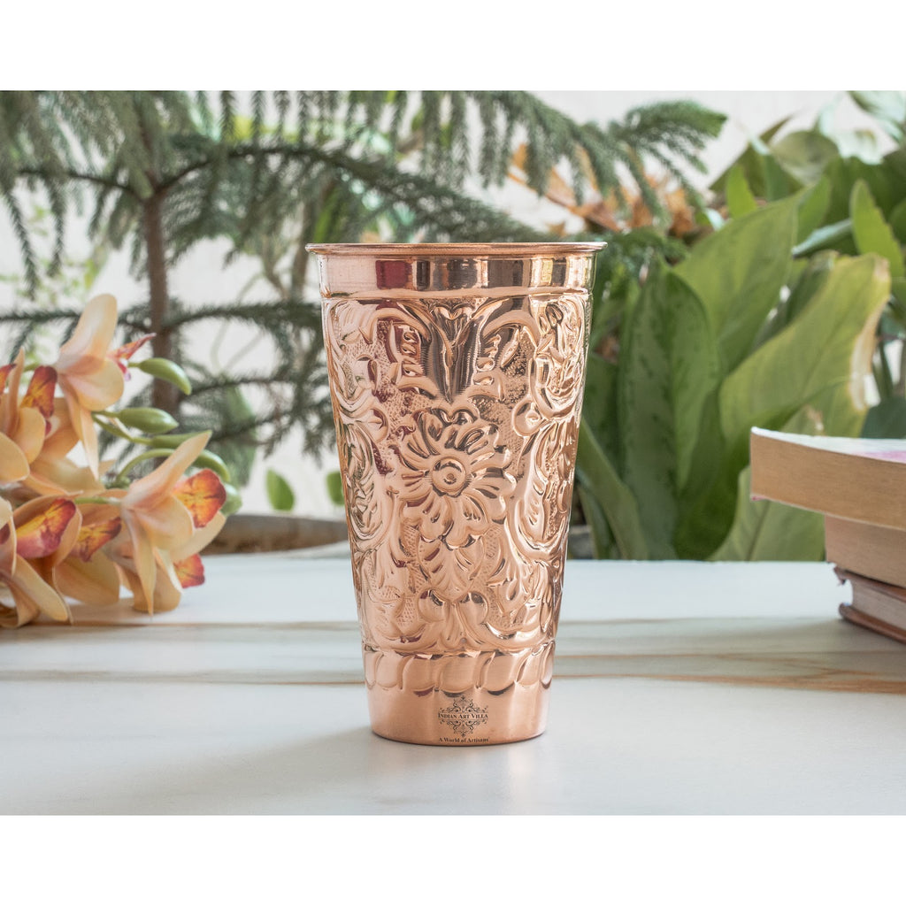 Pure Copper Handcrafted Embossed & Hammered Glass 525 ML