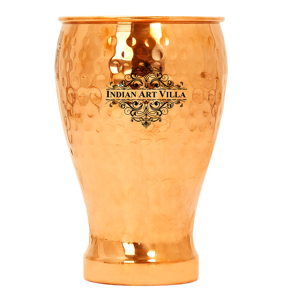 Pure Copper Round Shaped Glass with Hammered Design, 300ml