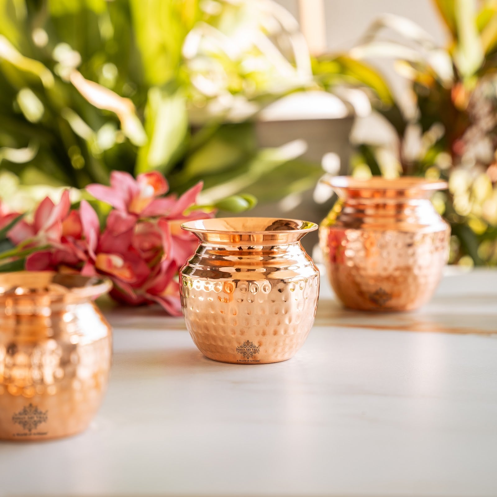 - These Pure Copper Hammered Design Lota\ Kalash also have Trendy looks for better ergonomics. You can add Royal Vintage Look to your Kitchen & Dining by using these Set as your Drinkware/Serveware Purpose.