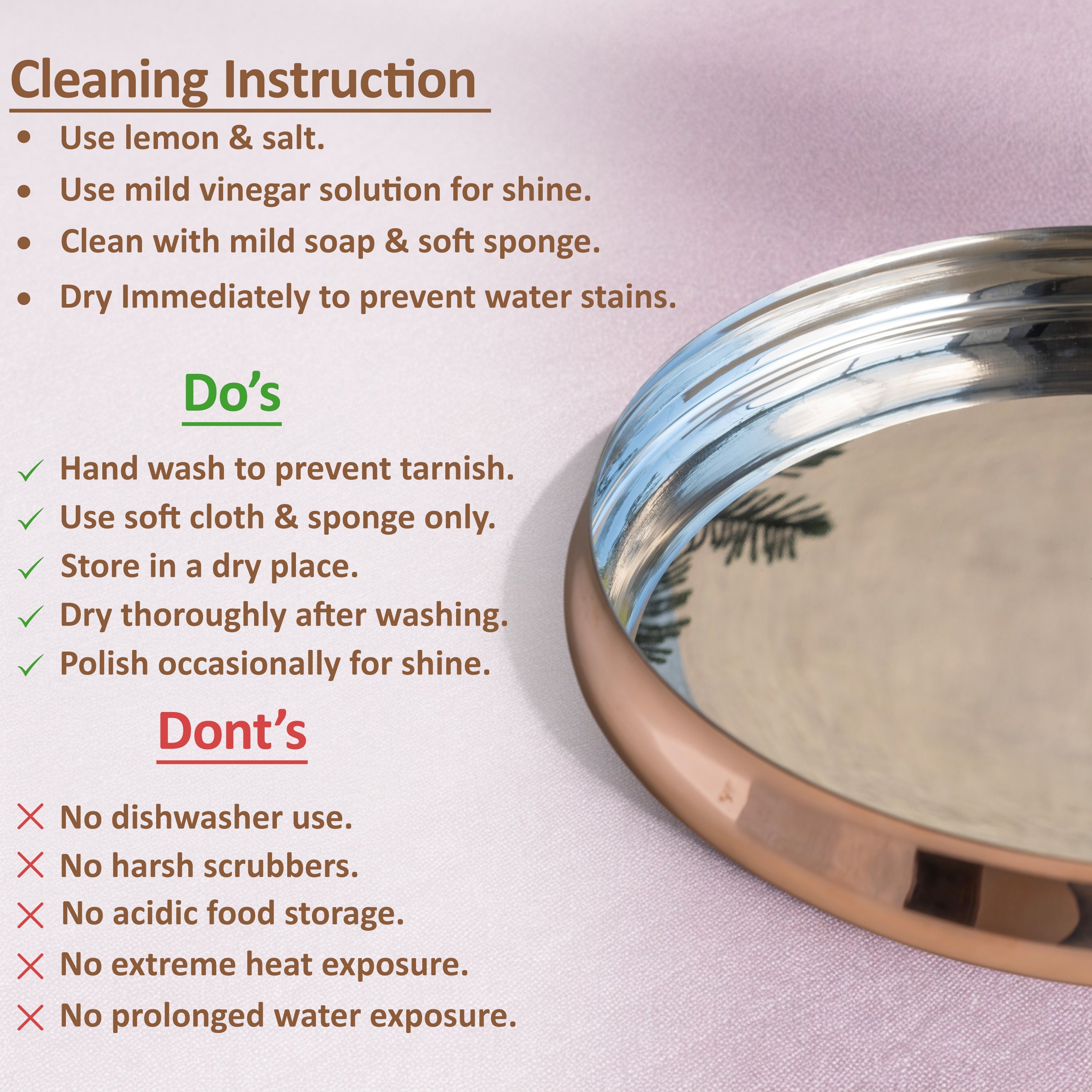 - These Pure Steel Copper Curved Thali also have Trendy looks for better ergonomics. You can add Royal Vintage Look to your Kitchen & Dining by using these Set as your Dinnerware/Serveware Purpose.