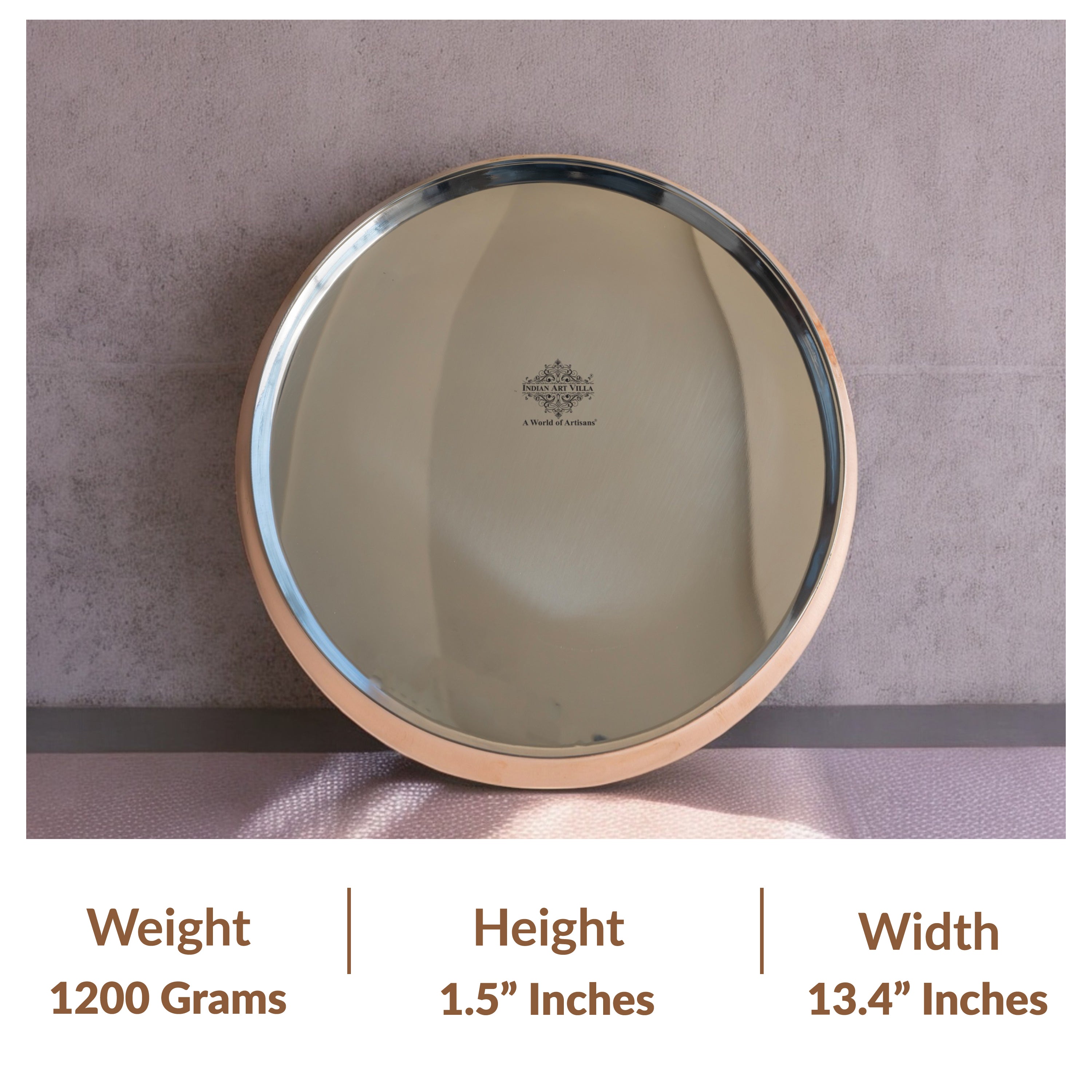- Indian Art Villa Pure Steel Copper Curved Thali, it was almost impossible to find one that came in a design other than the plain one. Indian Art Villa Provide You with different designs to choose from, allowing you to pick your favorite design or collect them all for those who want a variety of options.