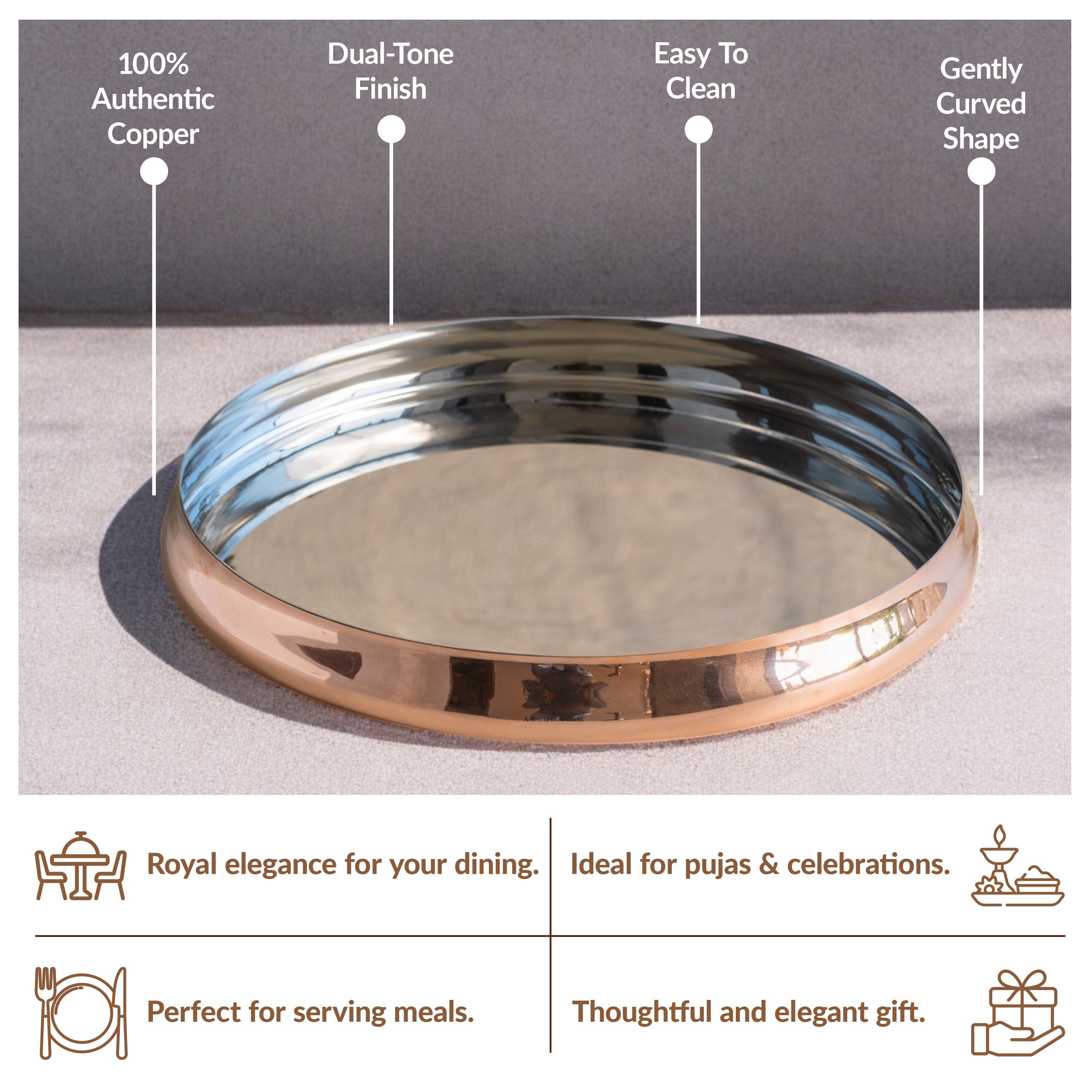 - Order this Pure Steel Copper Curved Thali from Indian Art Villa at Great deals & offers and get a Contactless delivery at your doorstep.