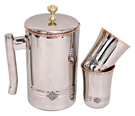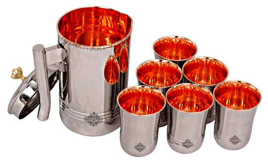 Indian Art Villa Pure Steel Copper Jug with Glass Set, it was almost impossible to find one that came in a design other than the plain one. Indian Art Villa Provide You with different designs to choose from, allowing you to pick your favorite design or collect them all for those who want a variety of options.