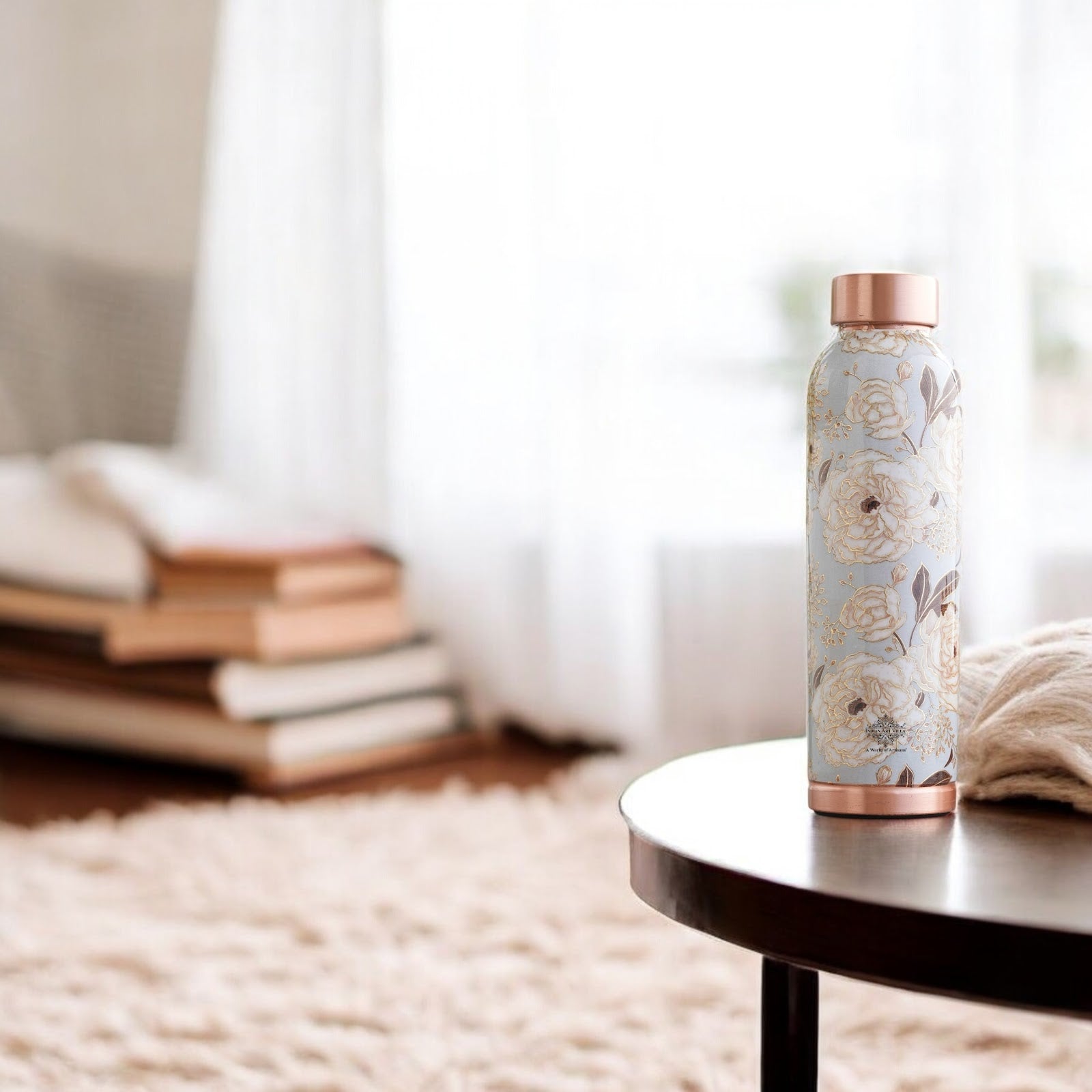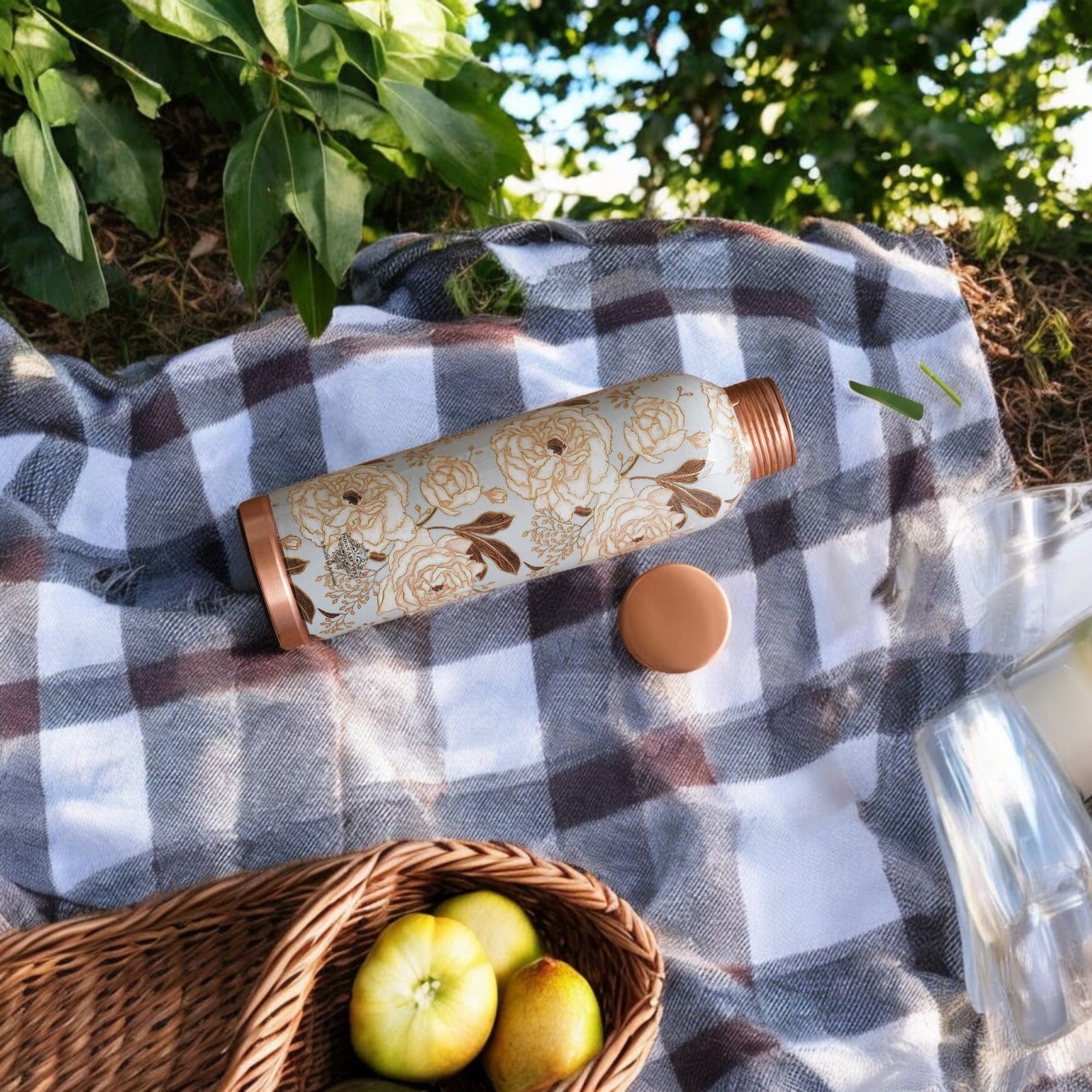 - Order this Pure Copper Gold Floral Print Design Water Bottle from Indian Art Villa at Great deals & offers and get a Contactless delivery at your doorstep.
