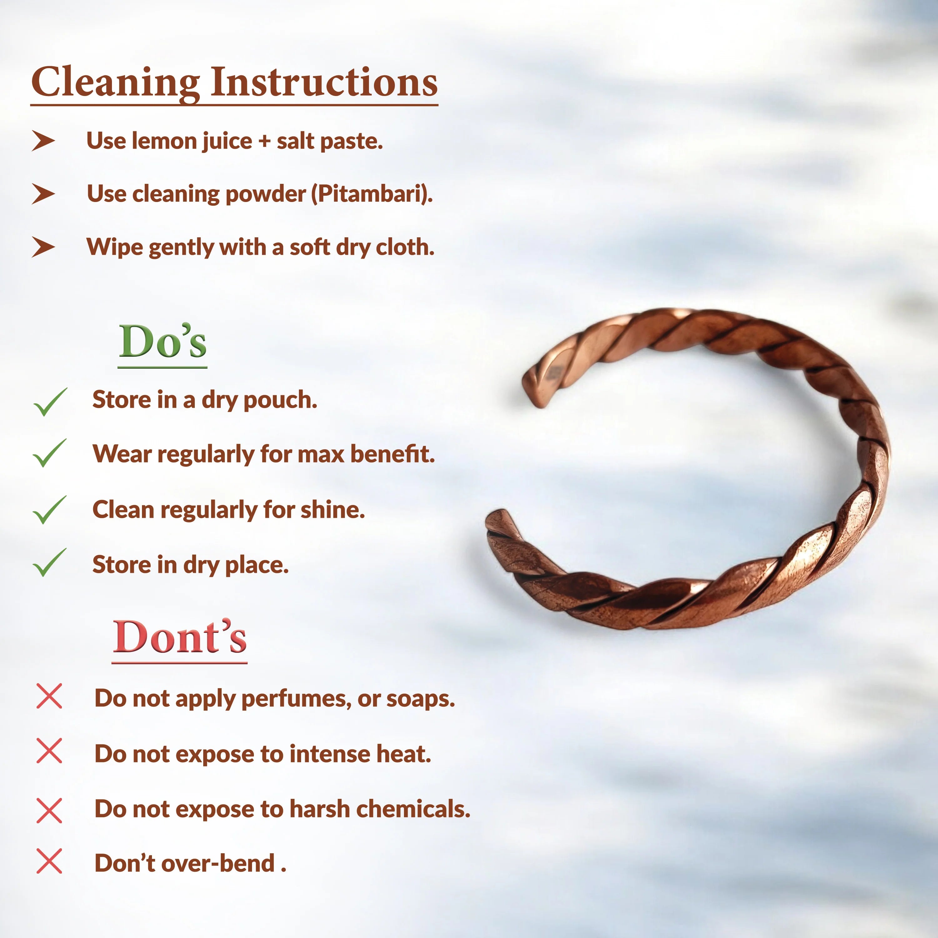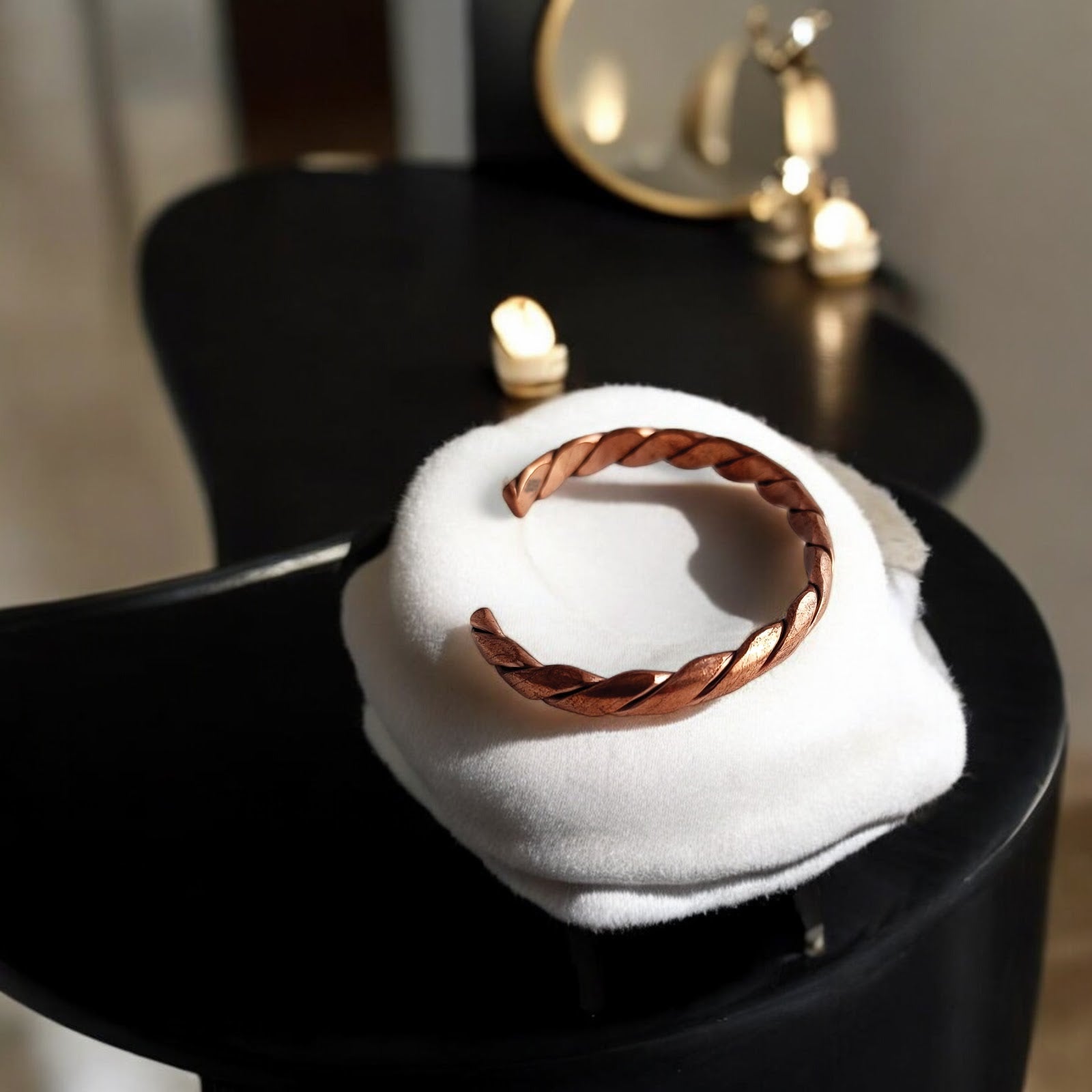 Indian Art Villa presents the Pure Copper Stone Finish Shine Bracelet with Inbuilt Magnet, a stylish yet functional healing accessory designed for energy balance, stress relief, and holistic well-being. This pure copper bangle features a textured stone finish with a shine polish, giving it a unique and rustic handcrafted look. The integrated magnetic therapy is believed to help enhance circulation, relieve joint pain, and support stress relief, making it an ideal wellness accessory. With an adjustable open-ended fit, this bracelet is suitable for both men and women, ensuring comfort throughout the day. Whether worn for health benefits, spiritual healing, or as a stylish accessory, this bangle is a must-have addition to your jewelry collection. Perfect as a gift for wellness seekers, fitness enthusiasts, and holistic healers, this bracelet is ideal for Diwali, birthdays, anniversaries, yoga retreats, and wellness programs.