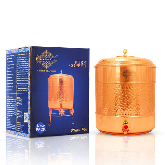 Pure Copper Water Pot with Stand-Hammered Design