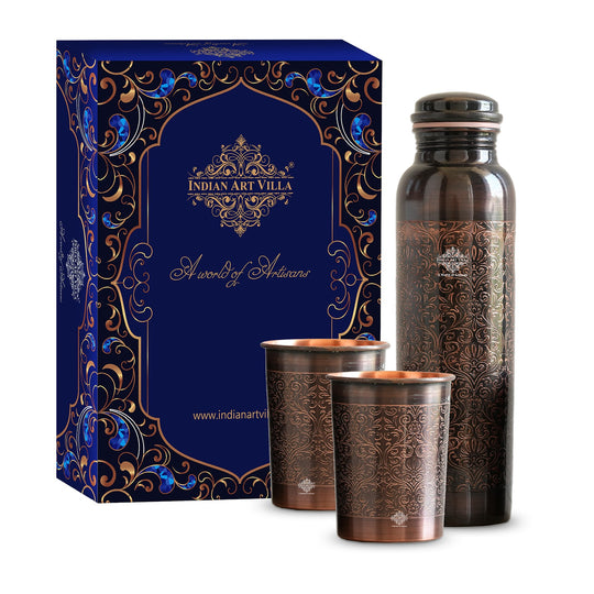 Pure Copper Bottle with Antique Dark Embossed Design, 900ml