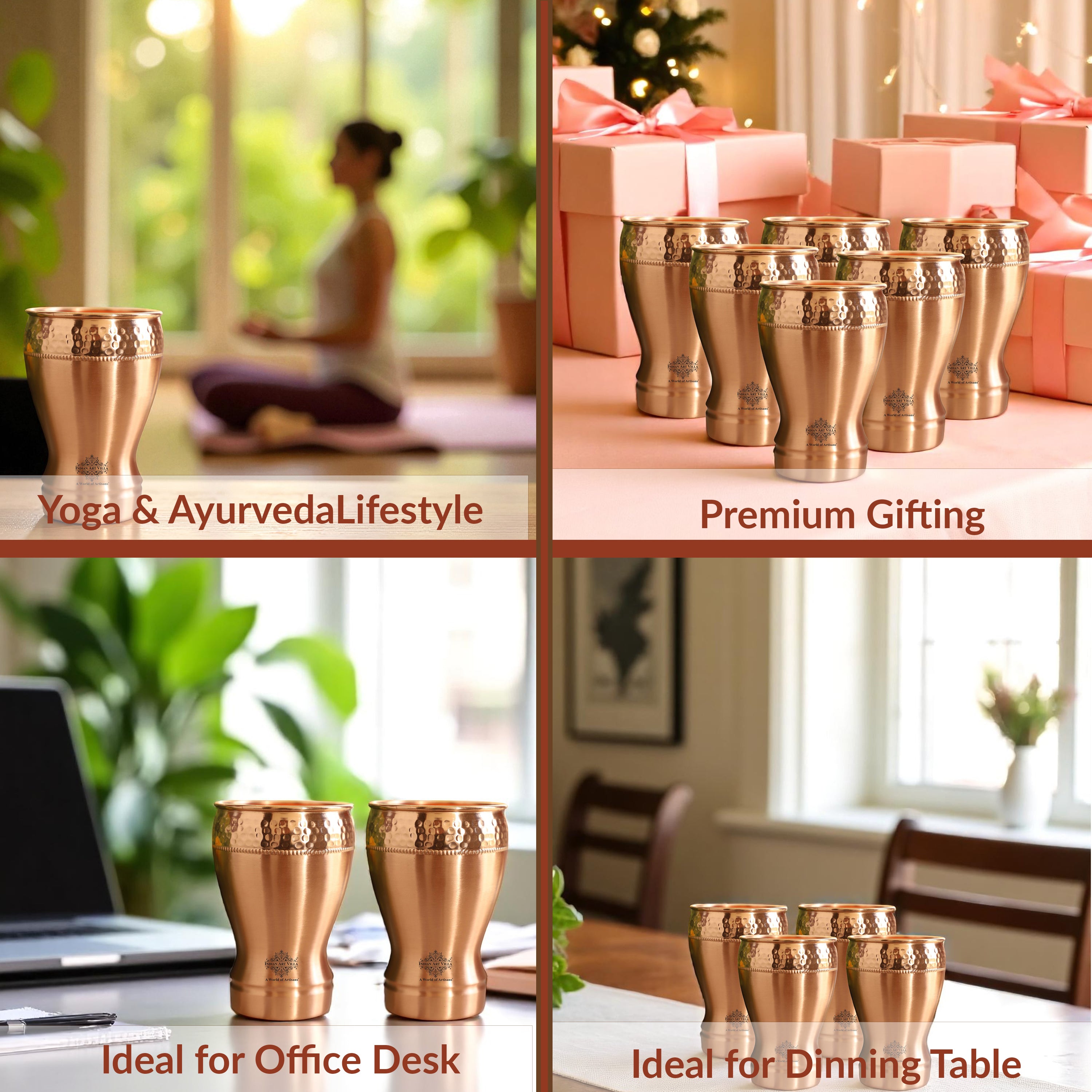 - These Pure Copper Glass With Half Lecquer Hammered Design not only have health benefits but also have Trendy looks for better ergonomics. You can add Royal Vintage Look to your Kitchen & Dining by using these Glasses as your Drinkware / Serveware.