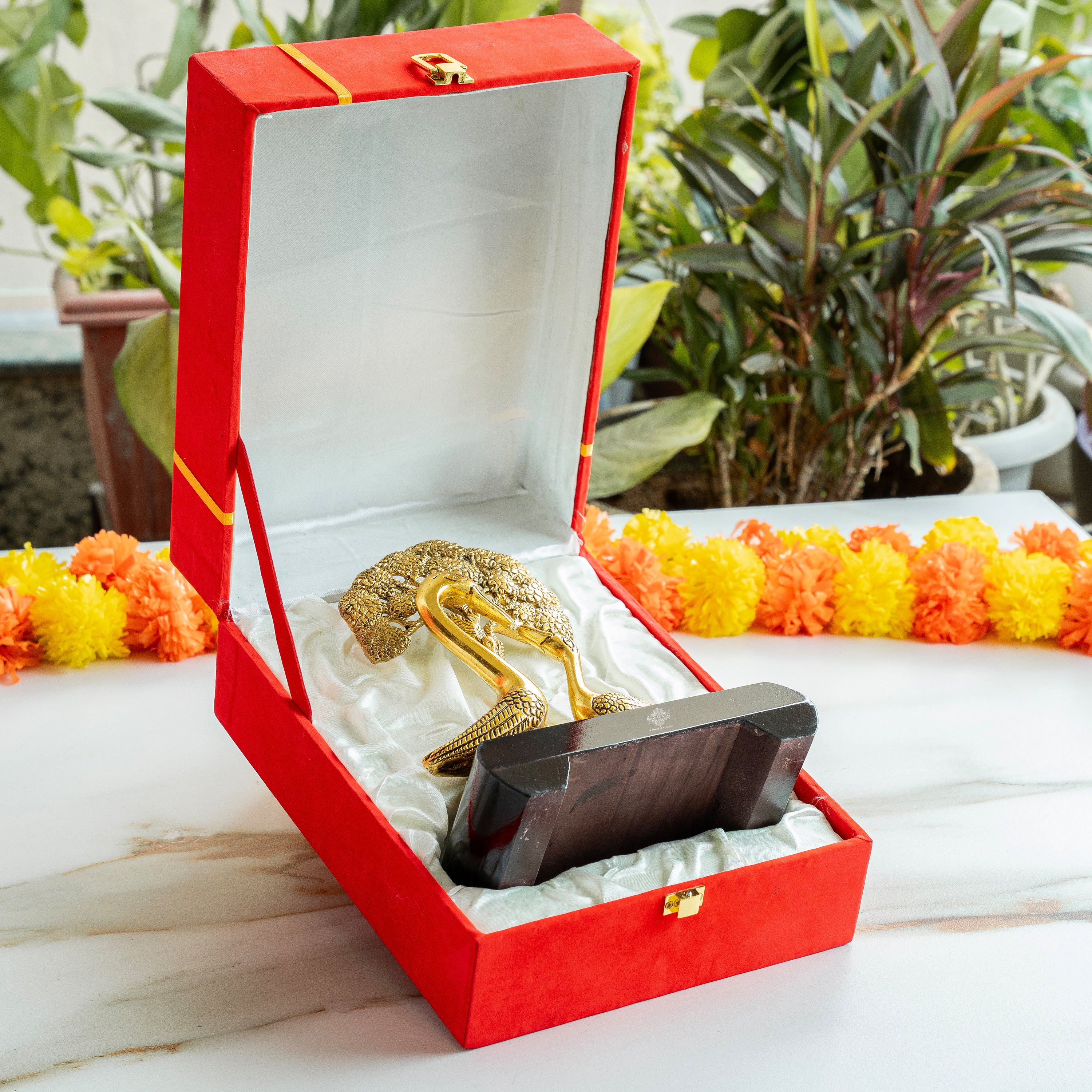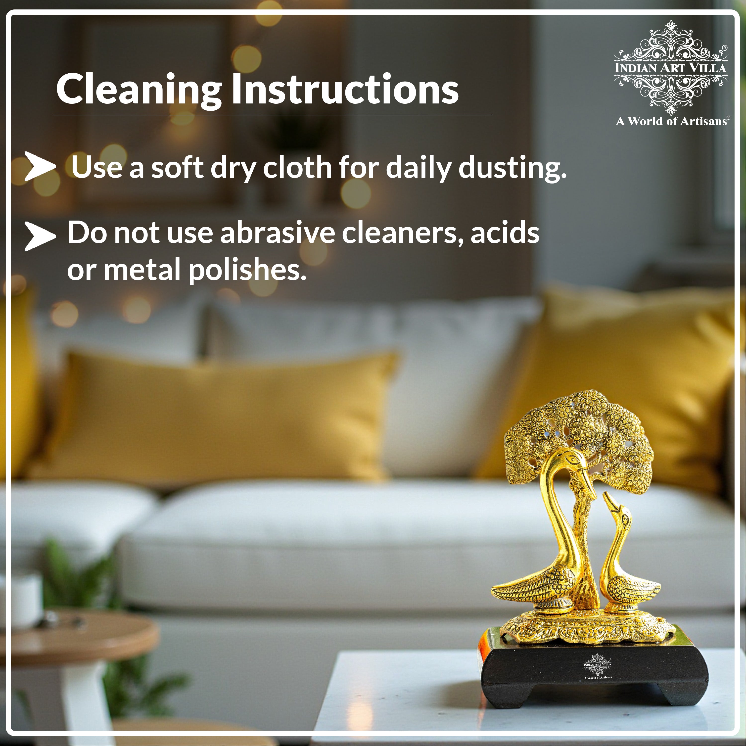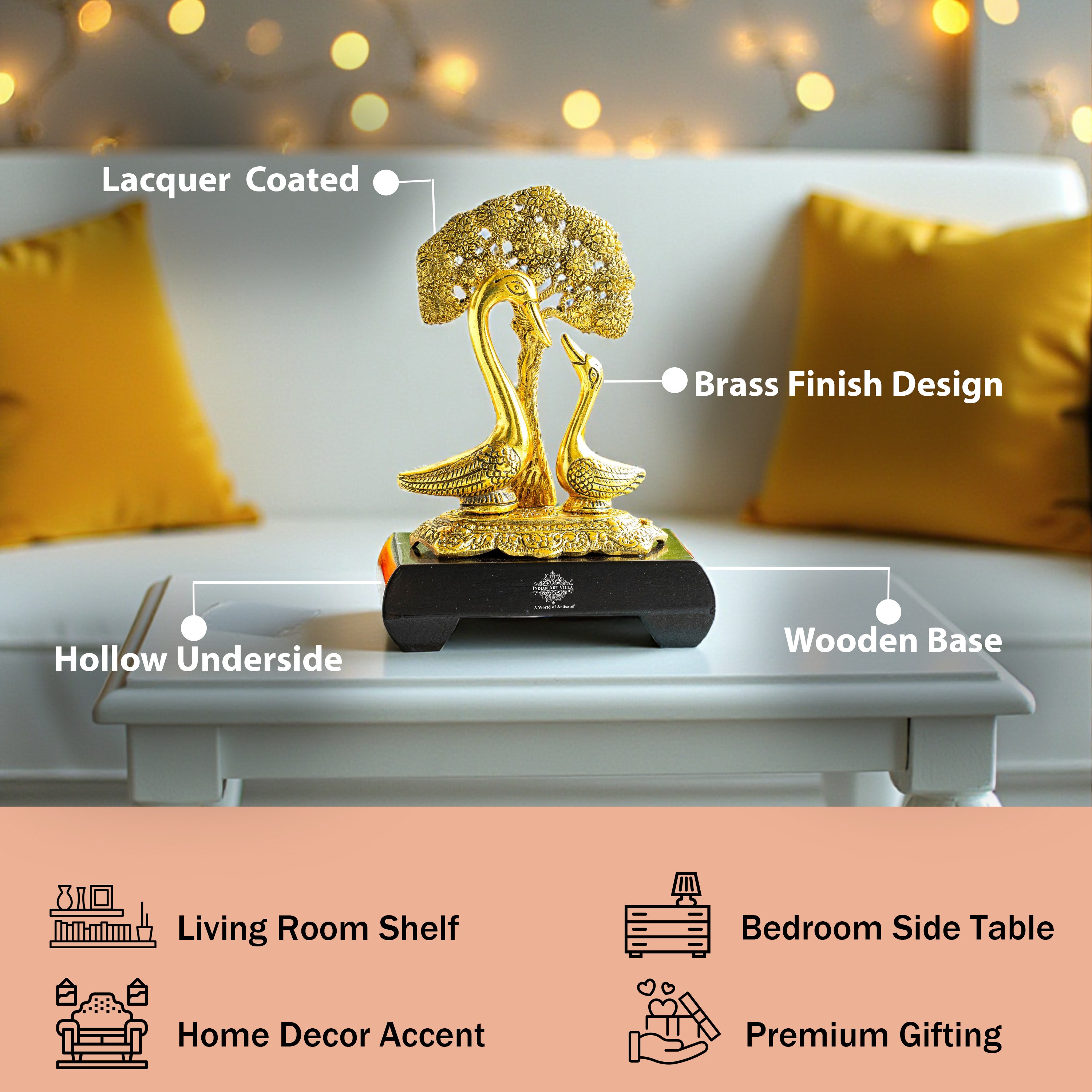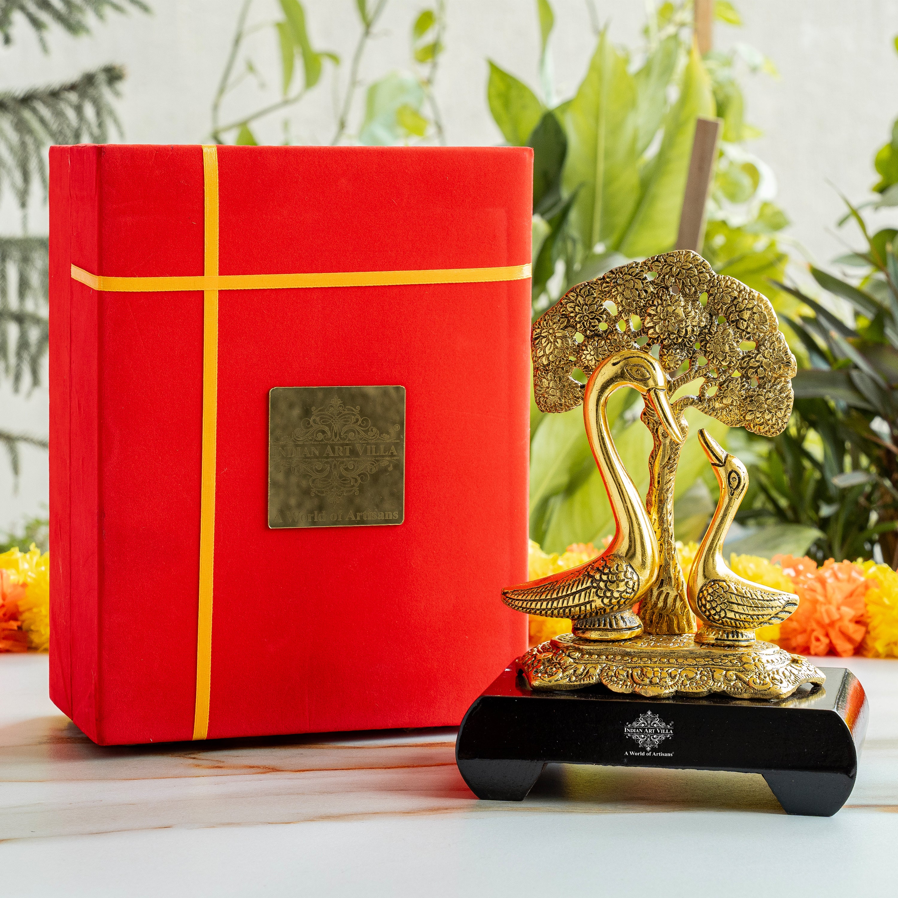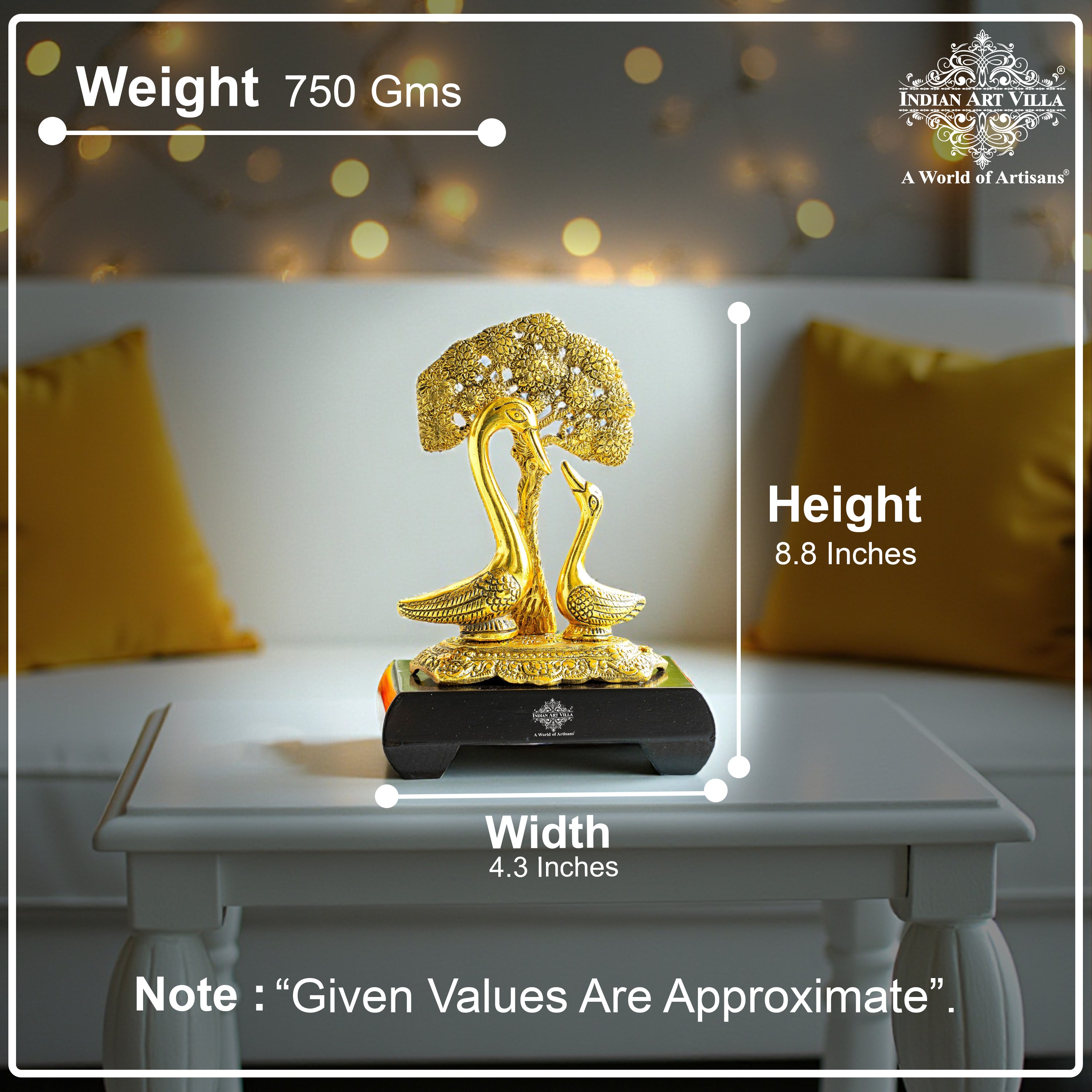 Bring home the charm of traditional artistry with the Indian Art Villa Brass Finish Swan Pair Showpiece. Elevate your space with timeless romance and artistic grace. The Indian Art Villa’s Brass Finish Swan Pair Showpiece is a symbol of eternal love and companionship, delicately designed with detailed feathers and a blooming tree. Mounted on a rich wooden base, this handcrafted piece comes lacquer coated for shine retention and is hollow from underneath for lightweight elegance. Encased in a premium velvet gift box, it makes an extraordinary choice for anniversaries, weddings, housewarmings, or festive gifting. It’s perfect for your living room, office desk, pooja corner, or as a thoughtful gift for festive and special occasions.