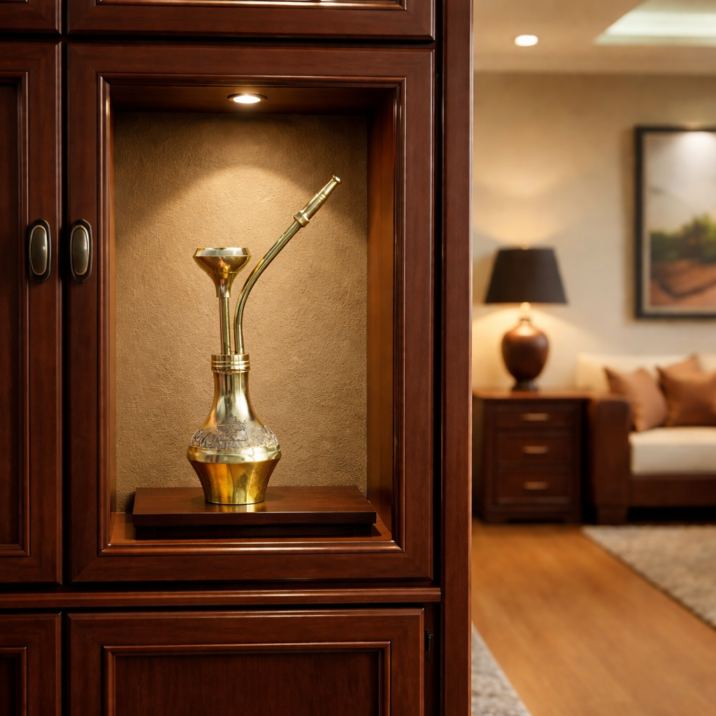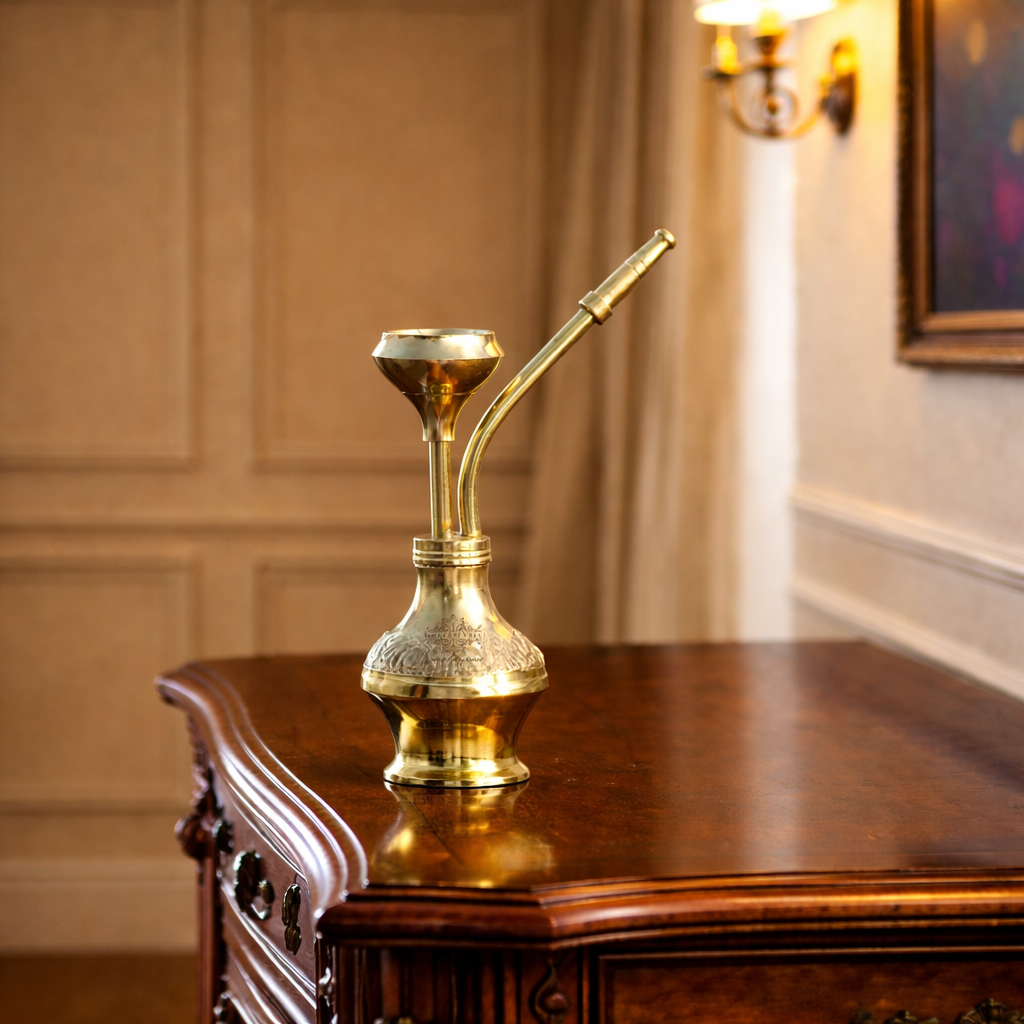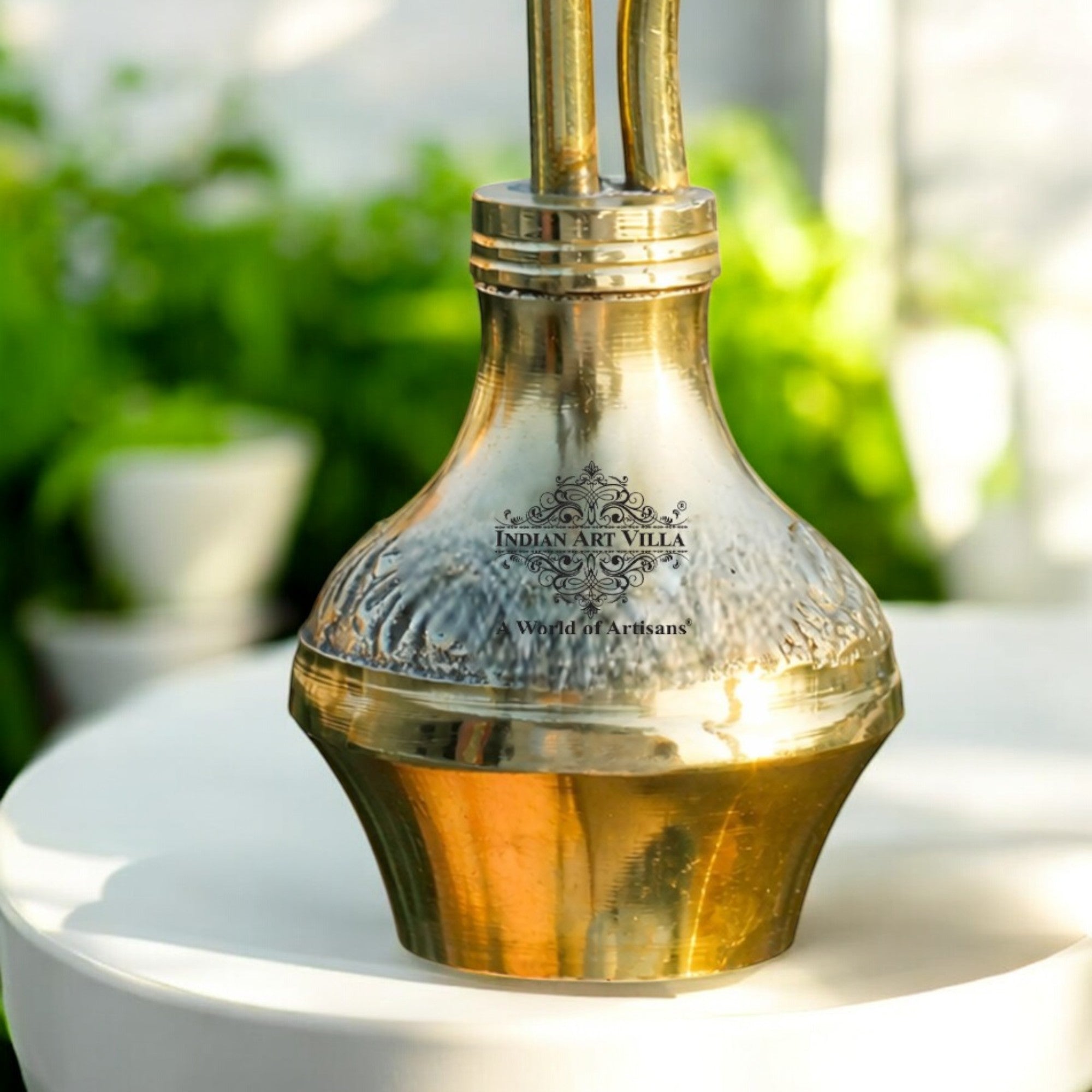 Indian Art Villa Pure Brass Chrome Finish Designer Hookah, a stunning decorative item that adds a touch of elegance to any space. Crafted from high-quality brass with a sleek chrome finish, this designer hookah is a true work of art. Its intricate design and exquisite detailing make it a standout piece of home décor, perfect for enhancing your living room, study, or entertainment area. The polished chrome finish adds a modern and luxurious touch, effortlessly blending with various interior styles. Not only does it serve as a beautiful decorative item, but it also makes for a thoughtful gift. Whether for housewarmings, weddings, or special occasions, this designer hookah is sure to leave a lasting impression. Please note that this product is intended for decorative purposes only and is not for tobacco or herbal use. Embrace the artistry and sophistication of the Indian Art Villa Pure Brass Chrome Finish Designer Hookah and elevate your home décor with this exquisite piece.