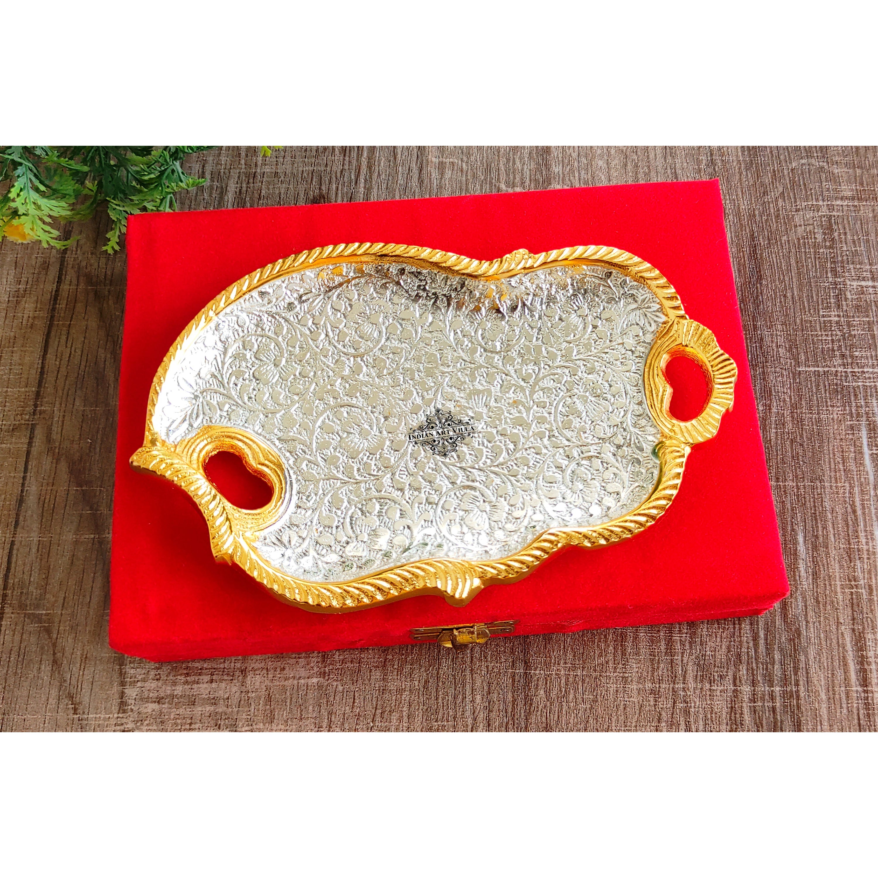 Indian Art Villa Presents Silver-plated gold Polished Aluminum Flower Engraved Designer Decorative Platter which is widely used for storing, serving and carrying food items. Praised among clients for its varied features, such as eye catching looks, excellent finishing and superb shine, the offered Decorative Platter is manufactured by our craftsmen using high grade raw material. Silver Decorative Platter along with Royal Velvet box to ensure royal look for your dining table. It can be considered as a beautiful and elegant gift for all occasions. This decorative bowl has been diligently handcrafted by skilled artisans. Serve your Royal Style with these Stylish Decorative Platter. Be it any occasion, it will only add to the elegance and royalty to your serving. Serve with love, serve in Royal Style.