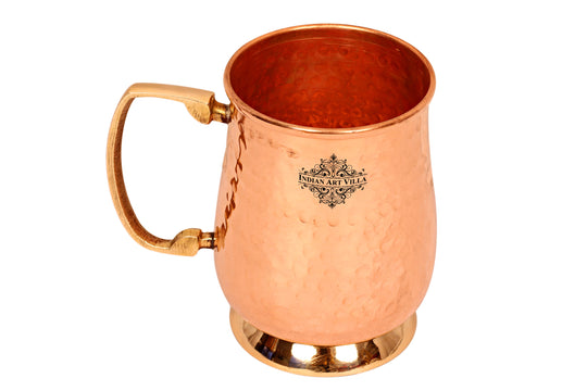 Handcrafted Pure Copper Hammered Mug with Brass Handle & Bottom