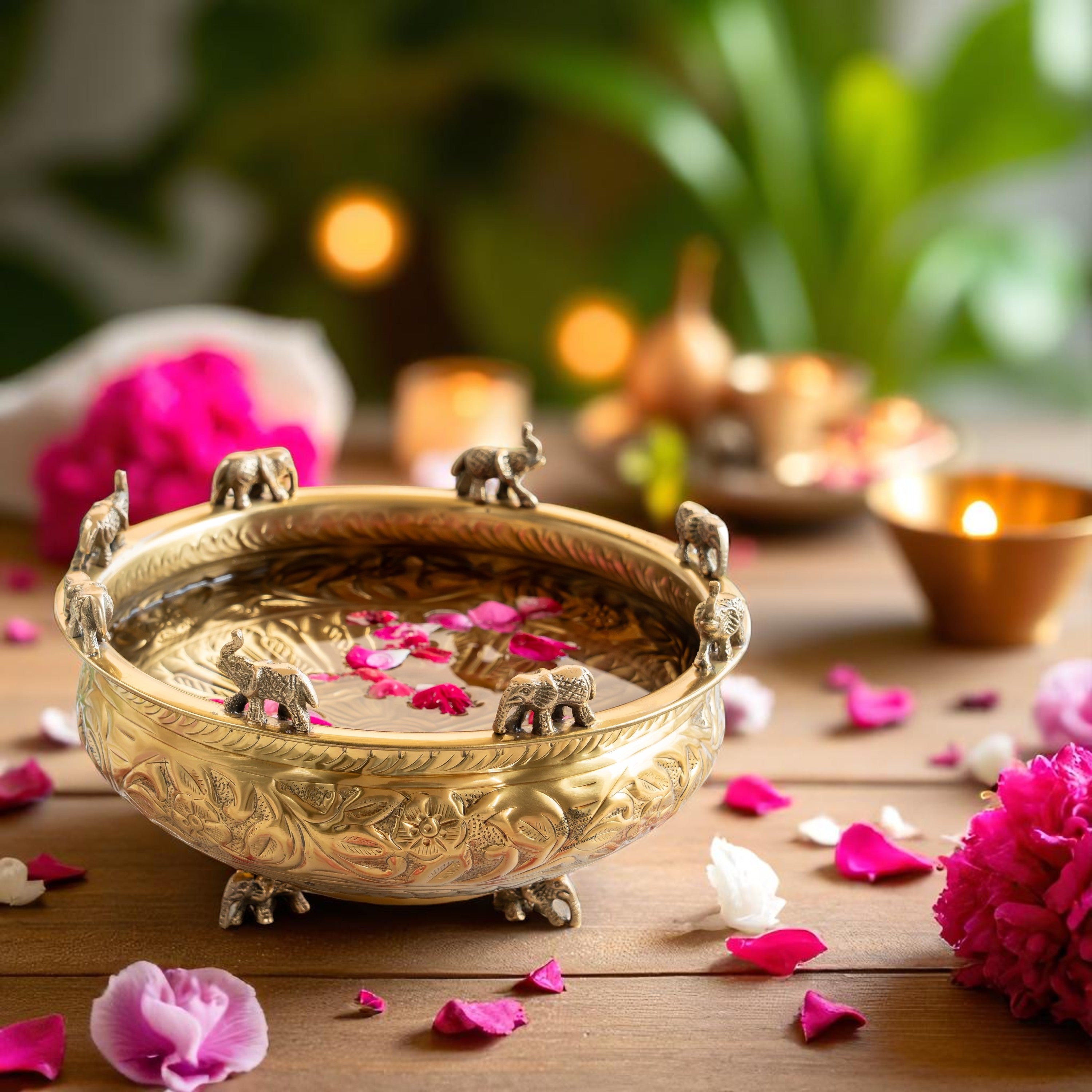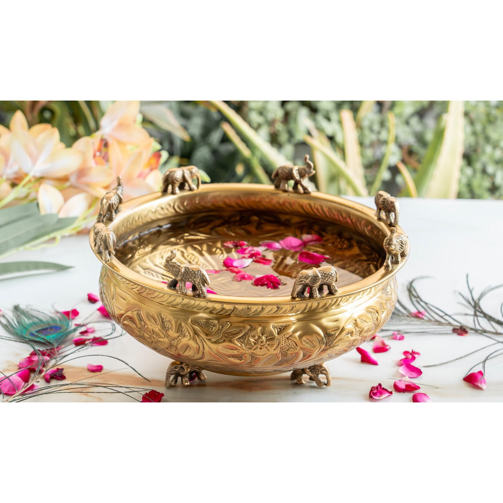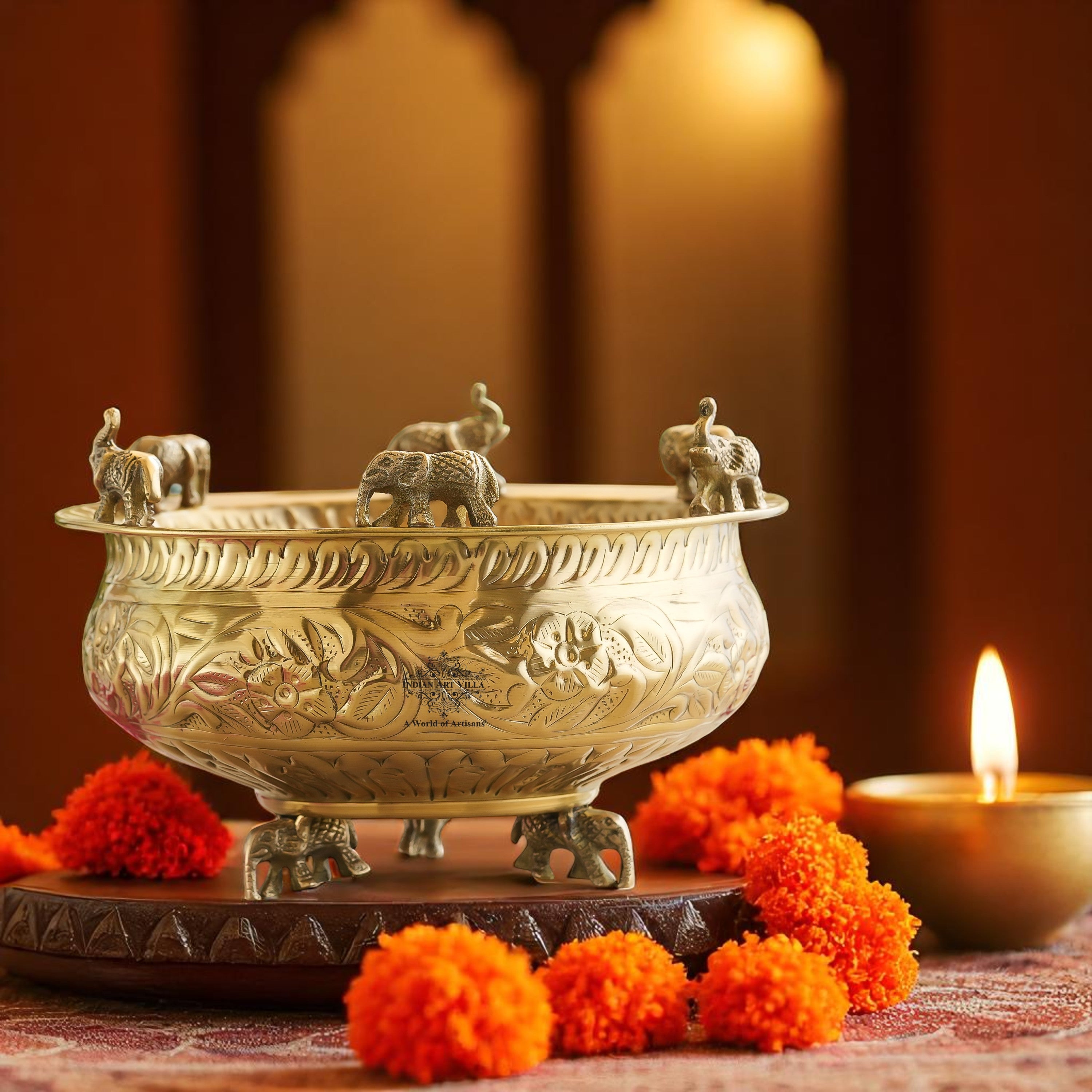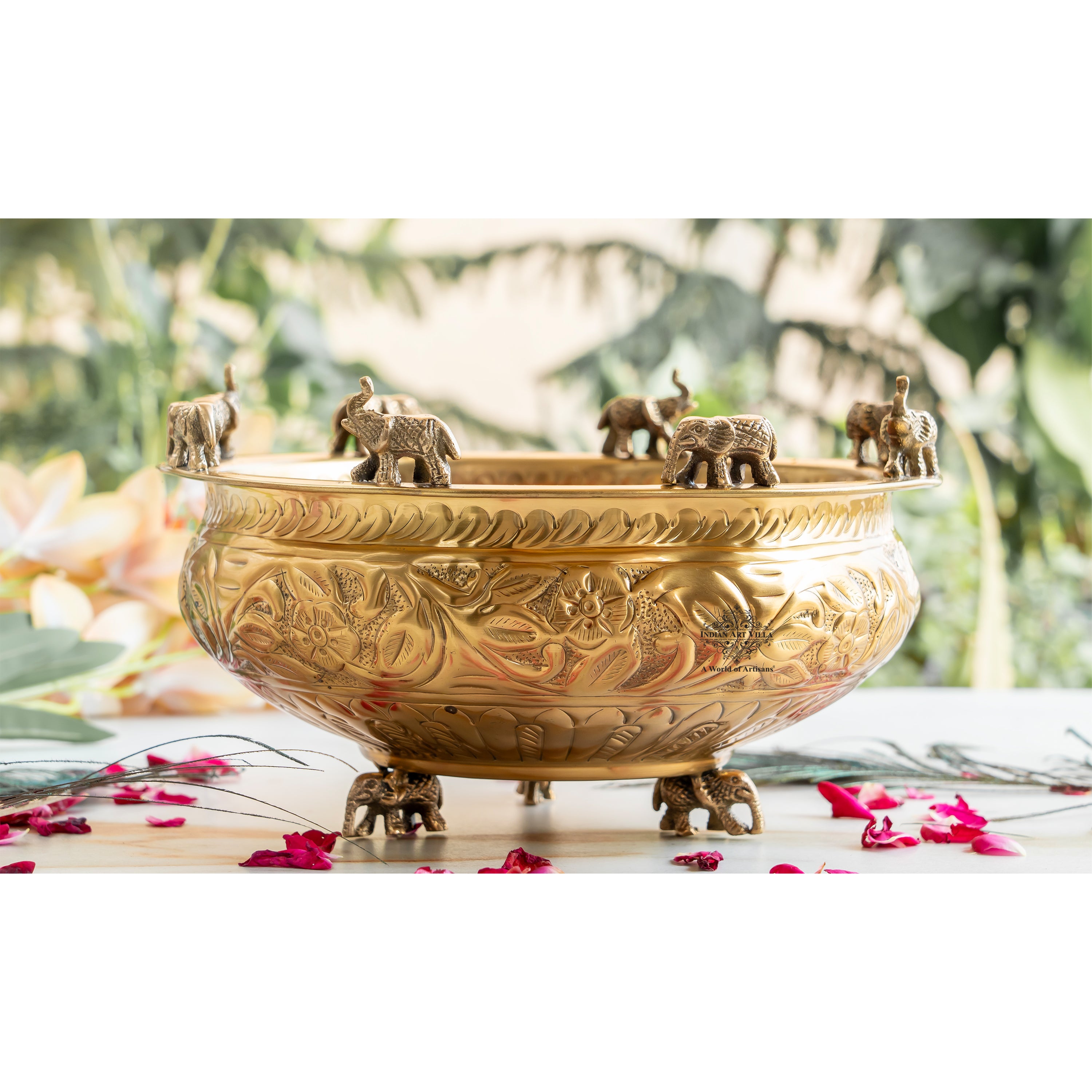 - Order this Pure Brass Embossed Design Urli with elephant statue from Indian Art Villa at Great deals & offers and get a Contactless delivery at your doorstep.