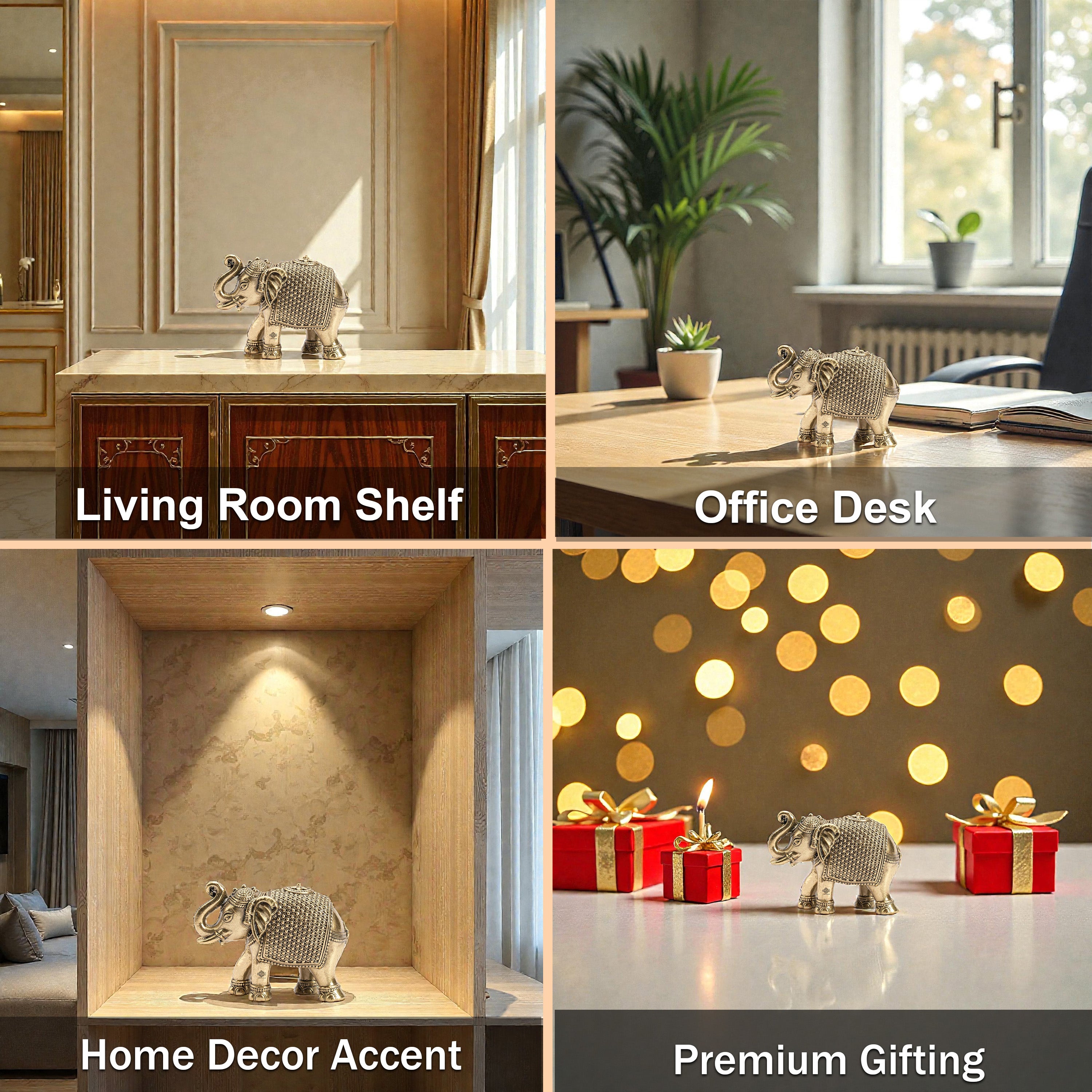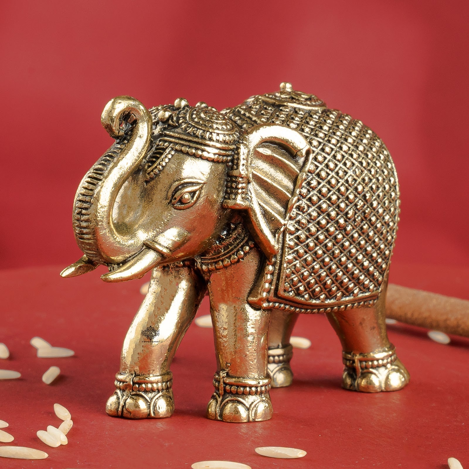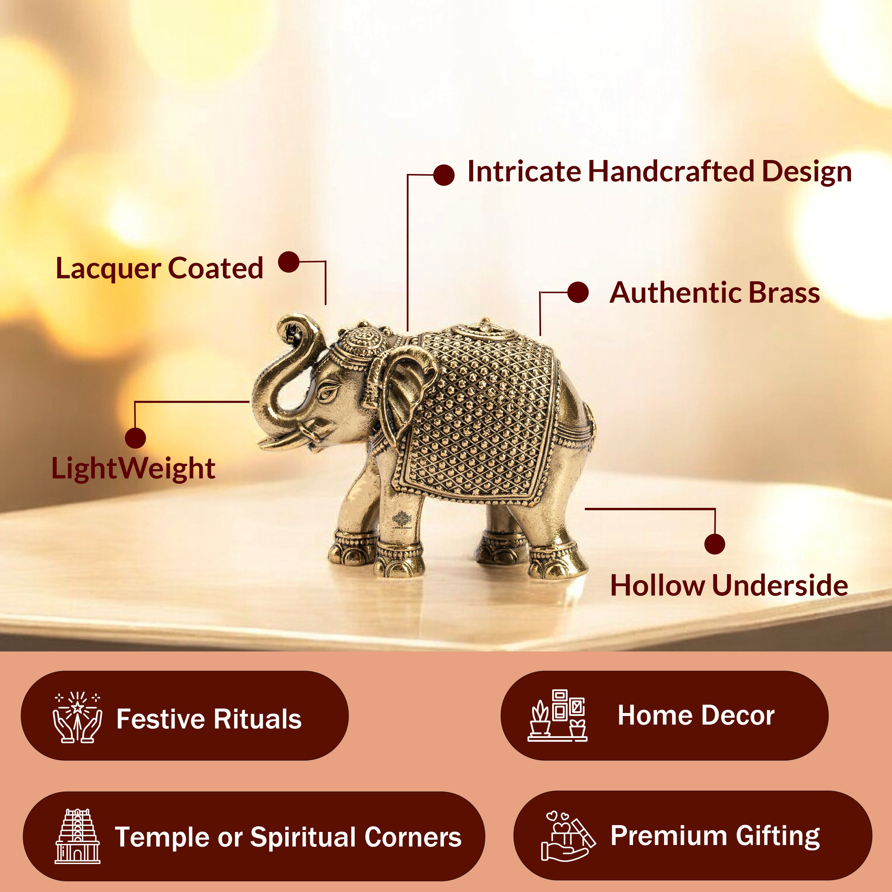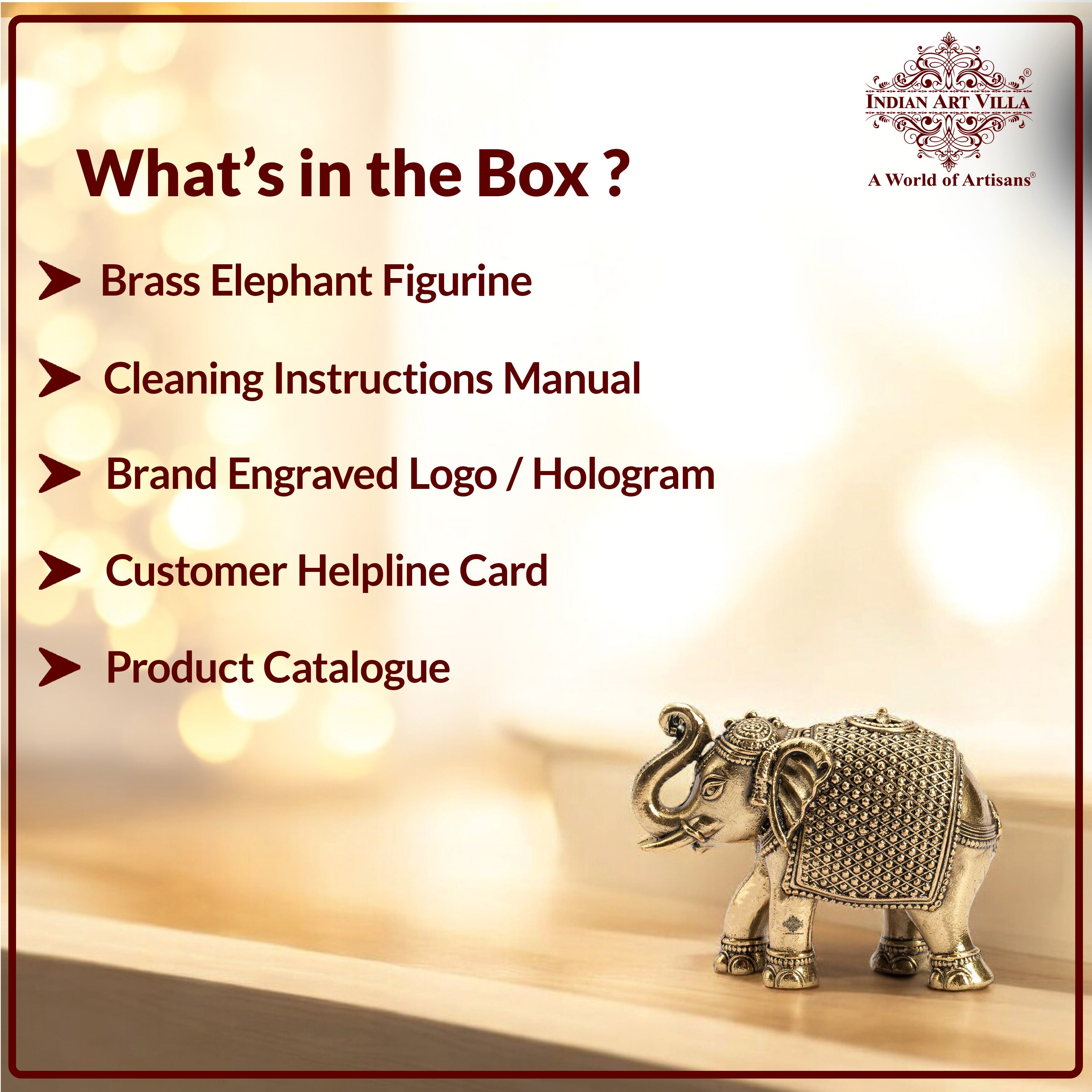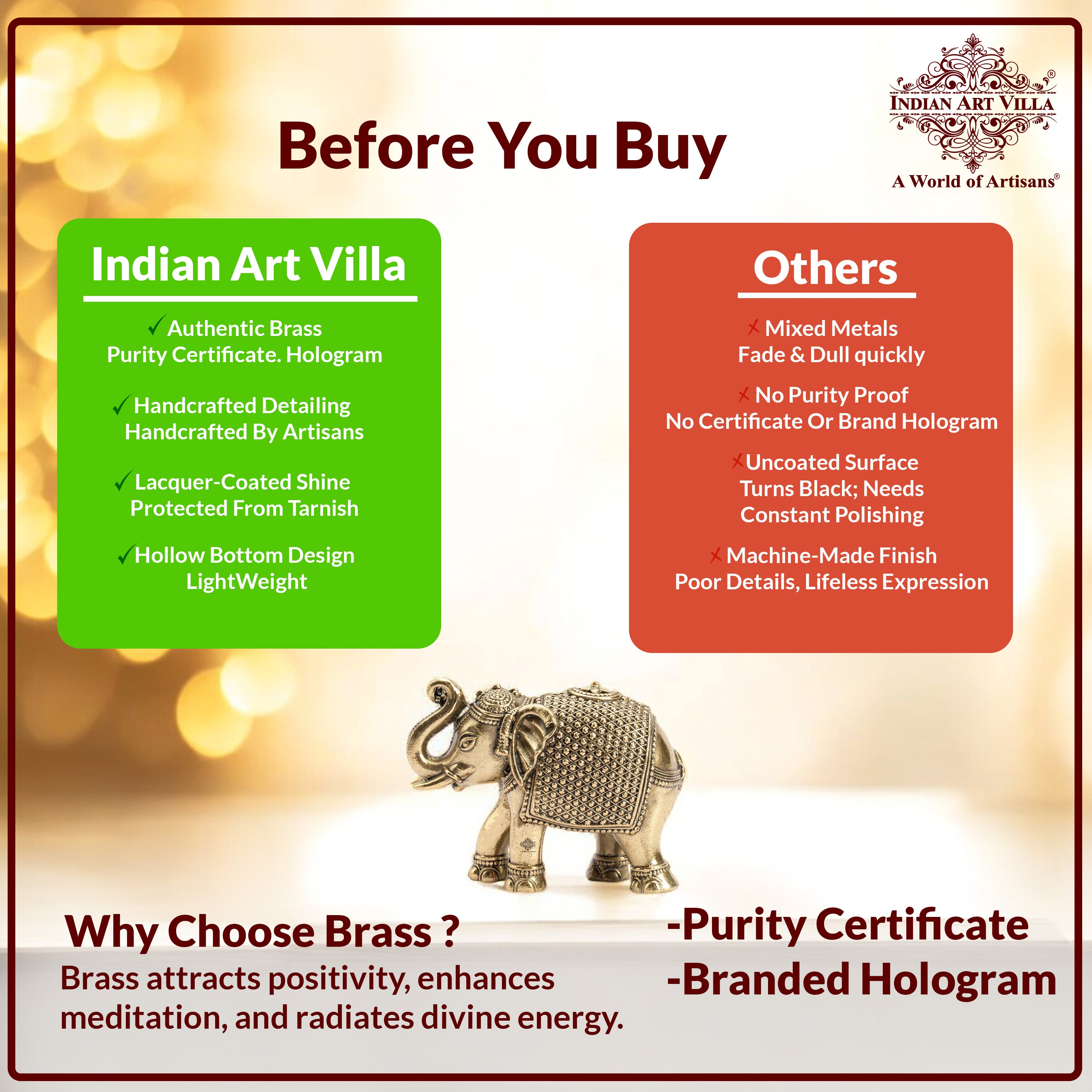 Indian Art Villa presents a stunning Brass Elephant Figurine, exquisitely handcrafted and finished with a lacquer coating to maintain shine and prevent tarnish. Measuring 5cm, 10cm & 15cm in height and hollow from the base, this décor piece blends traditional Indian craftsmanship with symbolic Vastu benefits. Elephants represent strength, protection, good luck, and royalty in Vedic culture. Whether placed at your home entrance, work desk, or living space, this brass elephant adds both aesthetic charm and spiritual meaning to your surroundings.