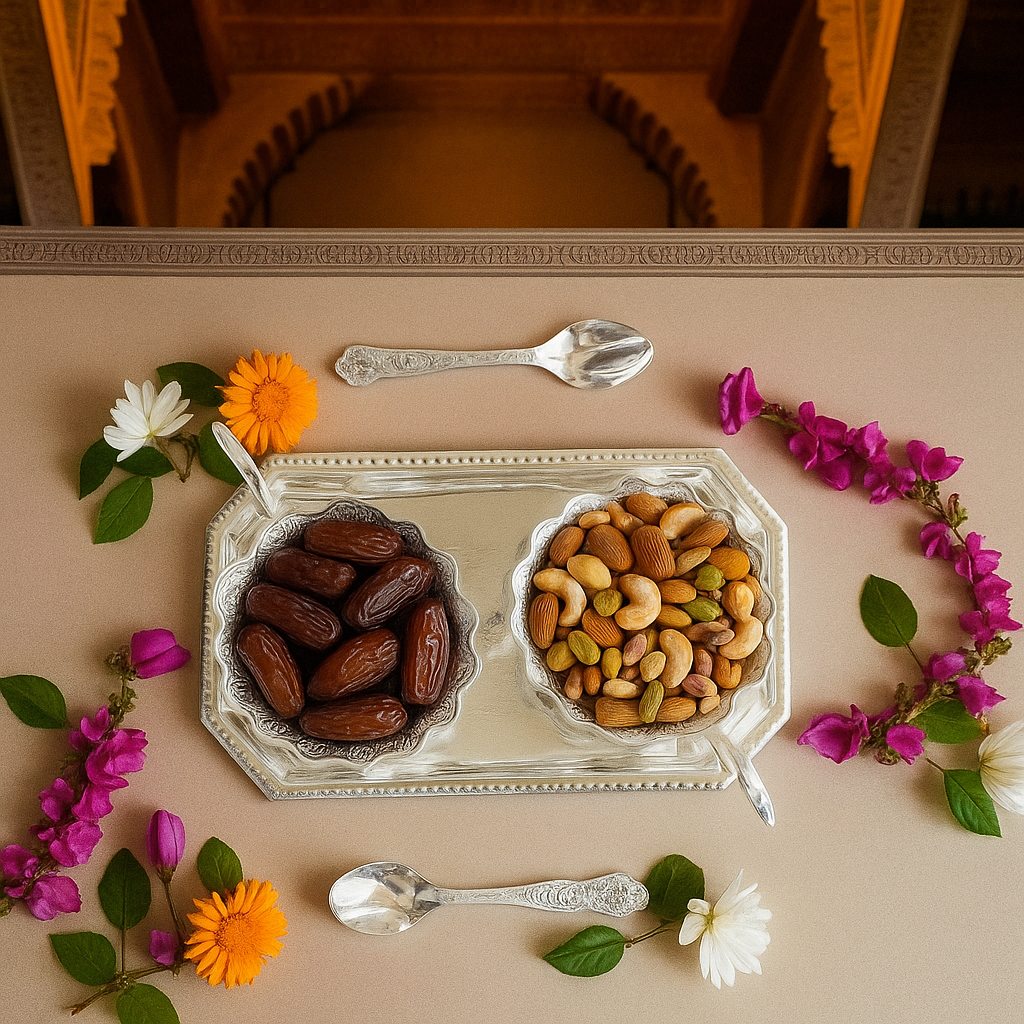 Coordinated Tray and Spoons: Set includes 2 matching silver-plated spoons and a decorative rectangular tray with embossed borders for a luxurious presentation.