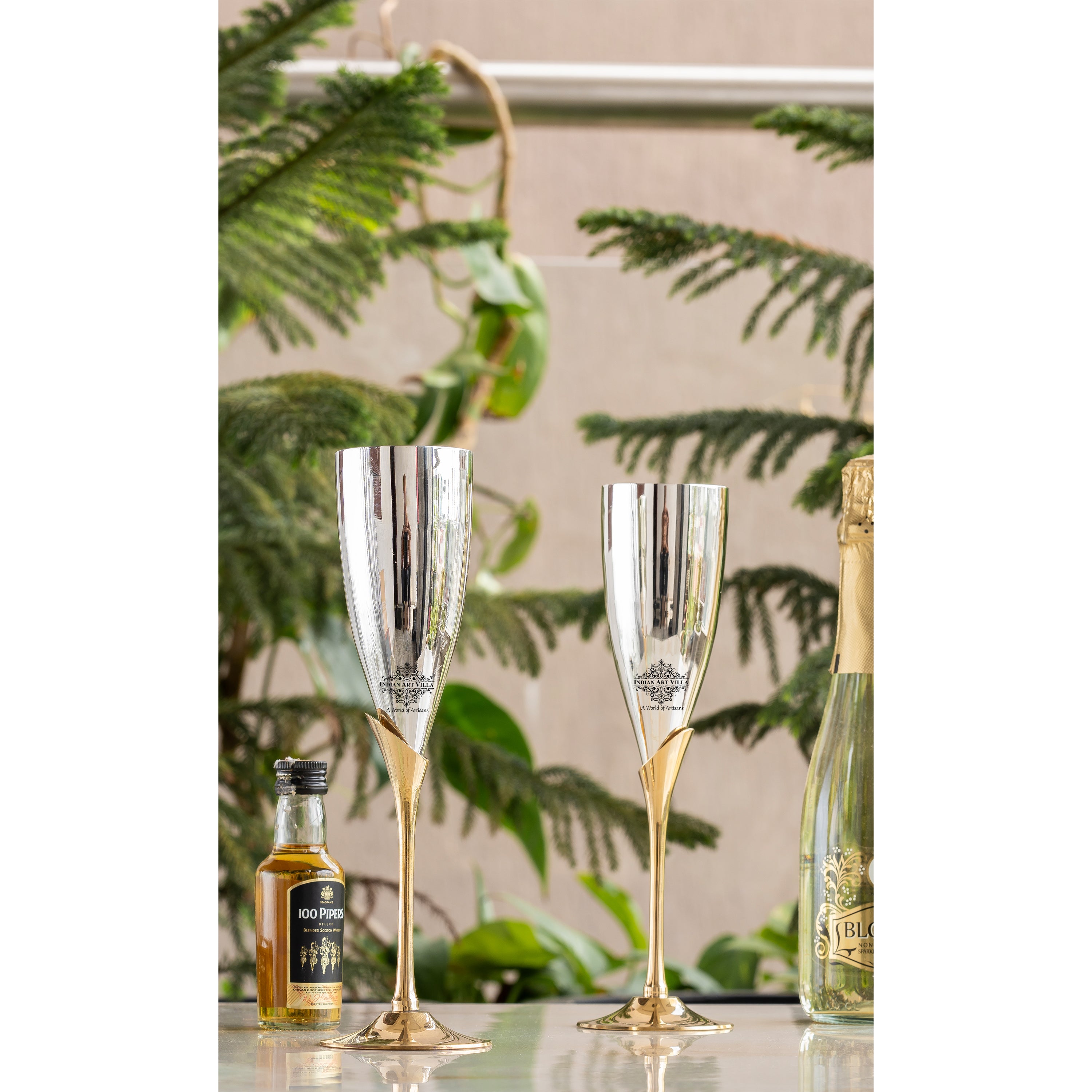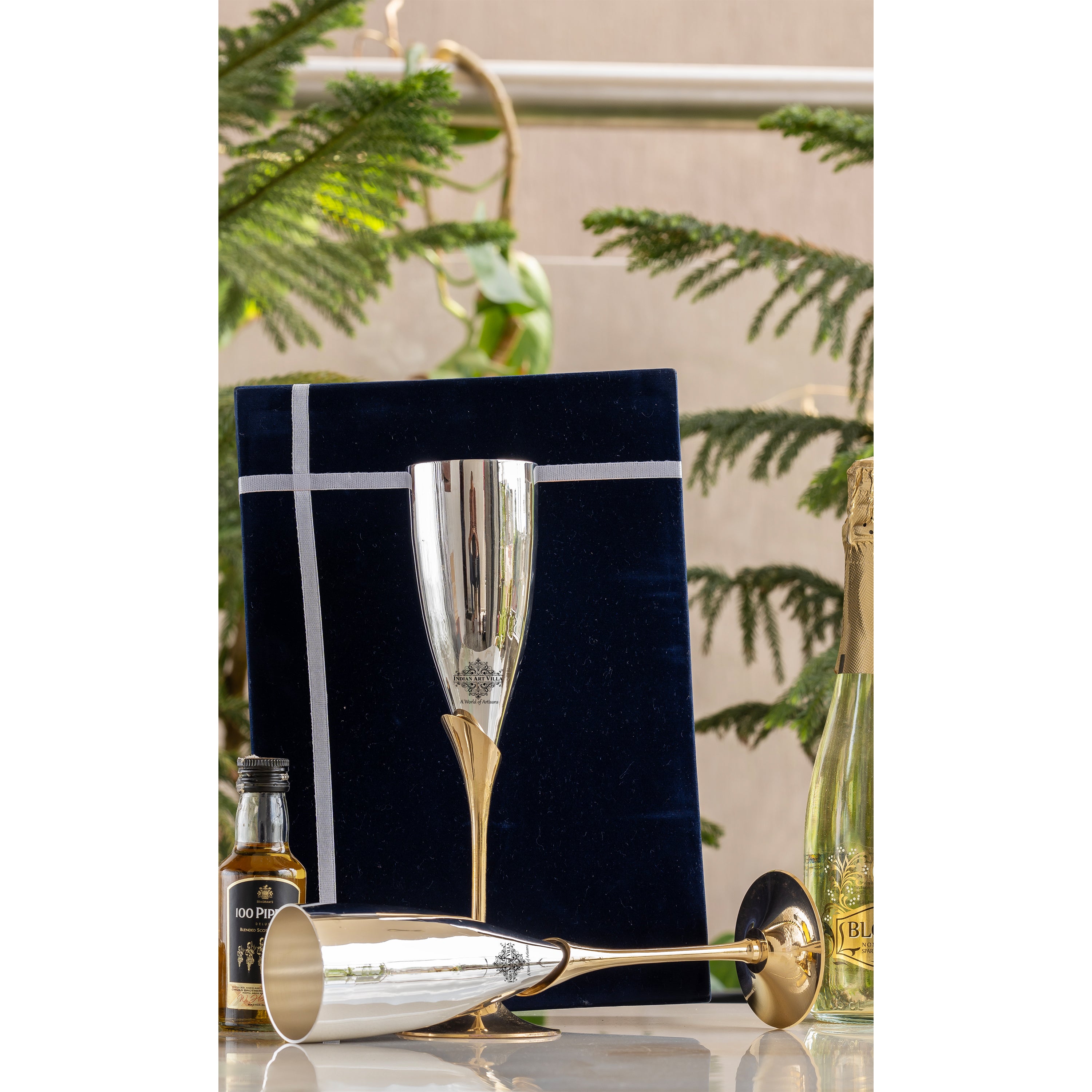 Silver Plated Champagne Flutes Set of 2 with Gift Box
