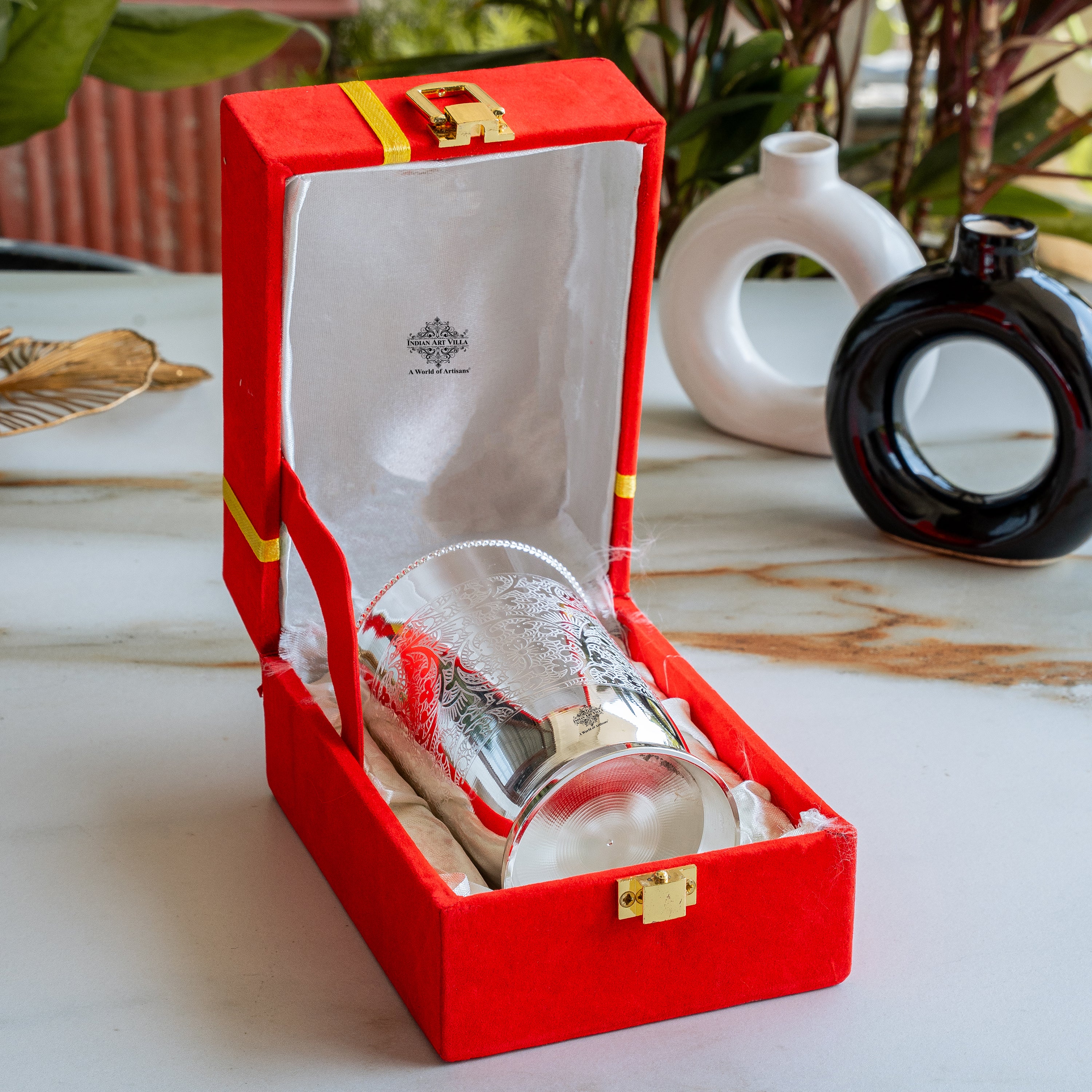 • Indian Art Villa Pure Silver Plated Embossed Design Glass, it was almost impossible to find one that came in a design other than the plain one. Indian Art Villa Provide You with different designs to choose from, allowing you to pick your favorite design or collect them all for those who want a variety of options.