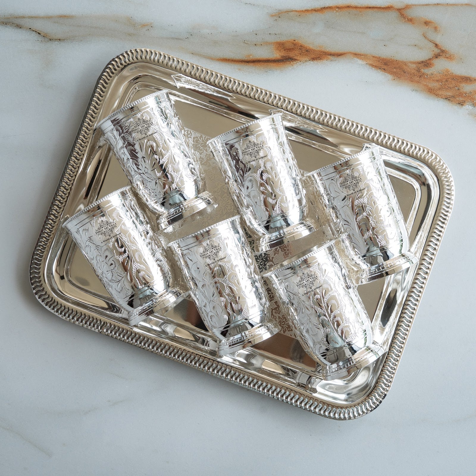 • Order this Silver Plated Designer 6 Glass with 1 Tray with Box from Indian Art Villa at Great deals & offers and get a Contactless delivery at your doorstep.