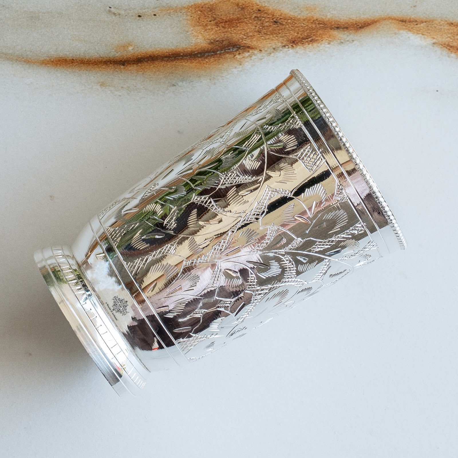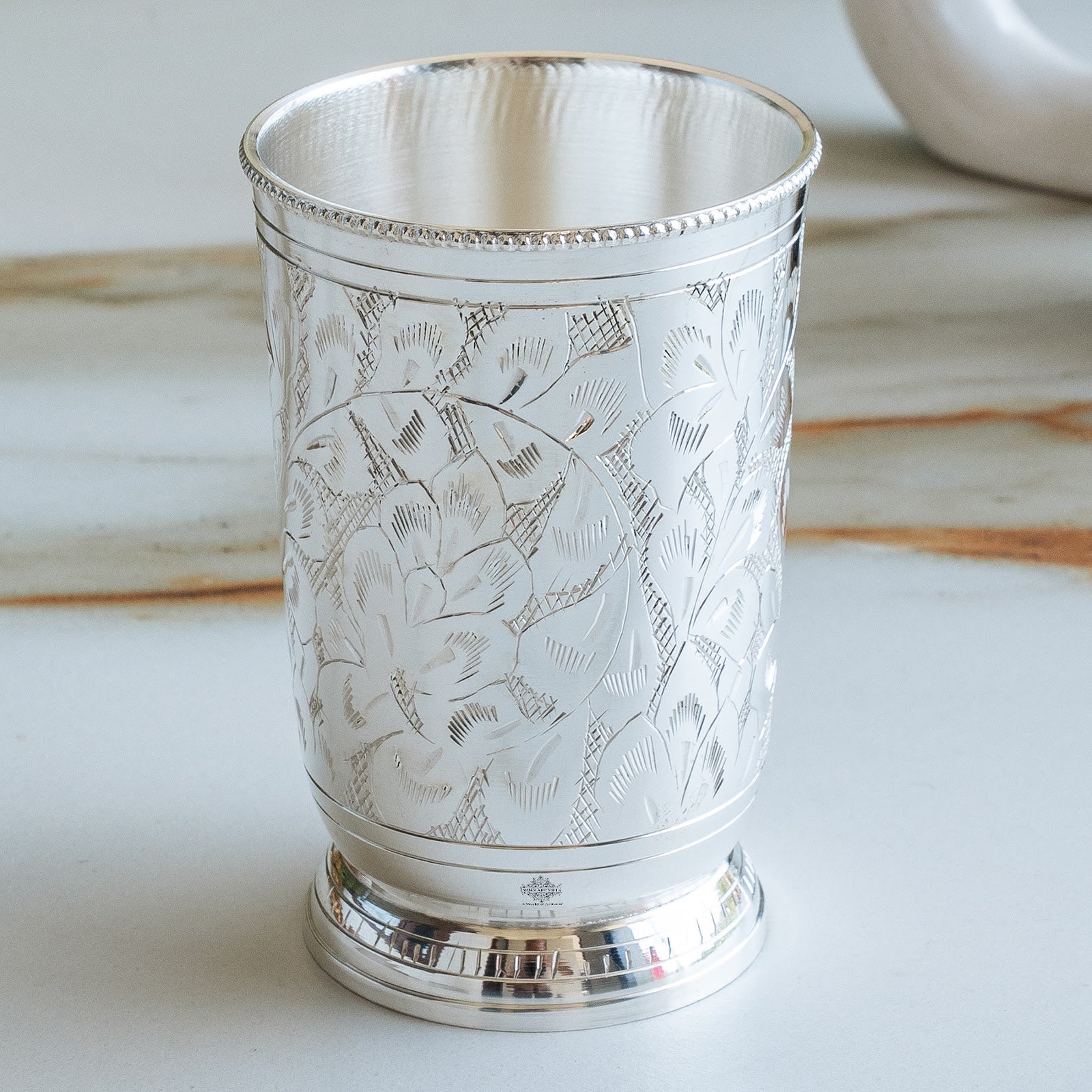 Premium Silver Plated Finish: Crafted with an elegant embossed design and luxurious silver plating, this glass radiates timeless sophistication and tradition.